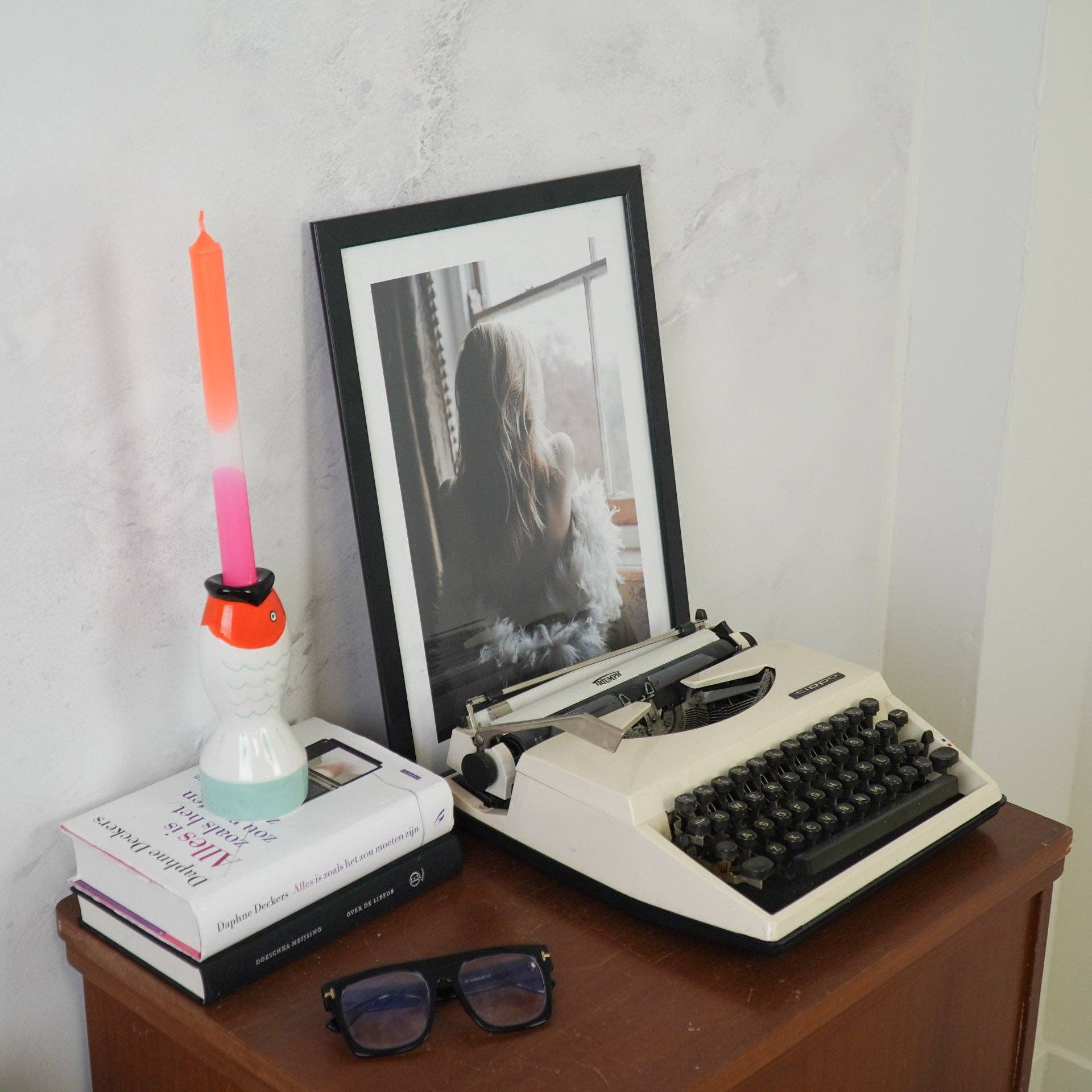 LIKE A FISH IN WATER - Dive into a sea of ​​style with this original fish-shaped candle holder! The combination of fresh colors gives this candle holder a playful and modern look. Made of sturdy dolomite and with a convenient size of 7 x 7 x 16.5 cm, this candle holder is perfect for the table, windowsill, or as a cheerful accent on a shelf. Whether you love the maritime atmosphere, are looking for a unique gift or simply want to add color to your interior, this fish candle holder always brings a smile and a touch of summer conviviality. Main features: - Original design: fish shape - Made from durable dolomite - Trendy color combination - Compact size, fits anywhere - Suitable for standard table candles - A playful eye-catcher in any interior - Dimensions: 7 x 7 x 16.5 cm Style tip: Combine this fish candle holder with other nautical accessories, such as seashells and stars.