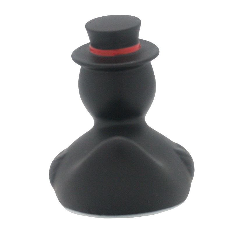 Correctly dressed in a habit and a hat, this penguin is a real gentleman among your collection of baths.