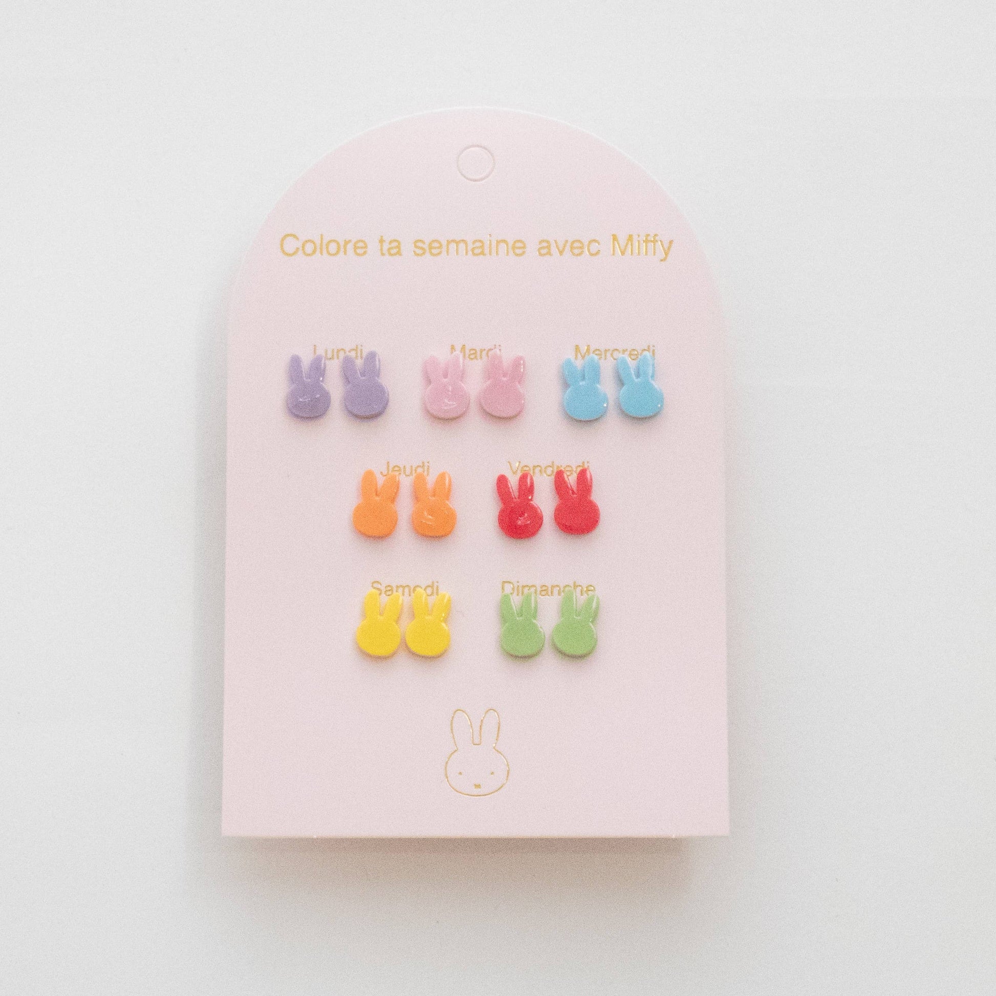 Colour your week with Miffy - A card of 7 pairs of earrings for pierced ears.