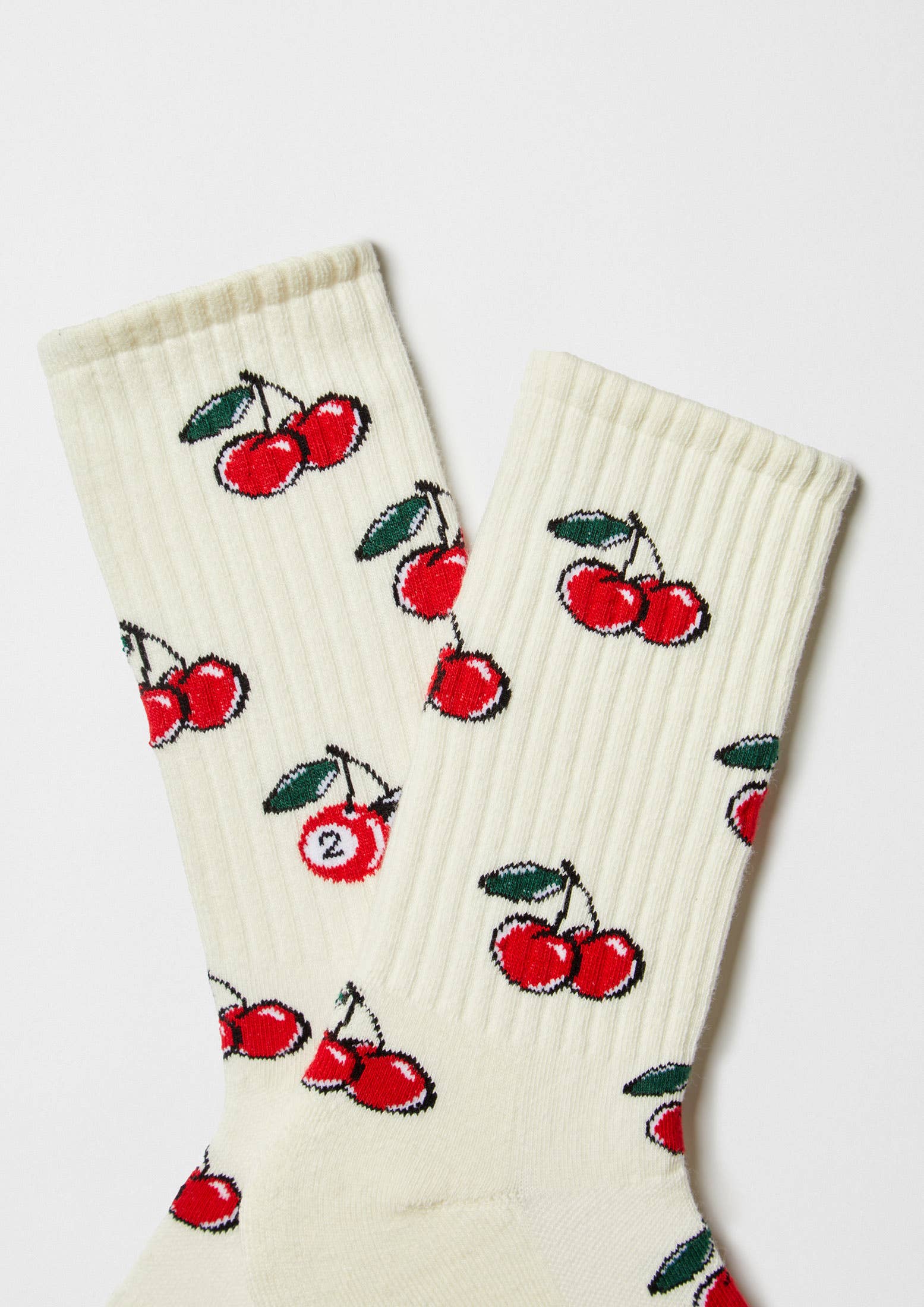 Beige sporty socks made from 100% organic cotton. Mid-calf length. Ideal for streetwear outfits.