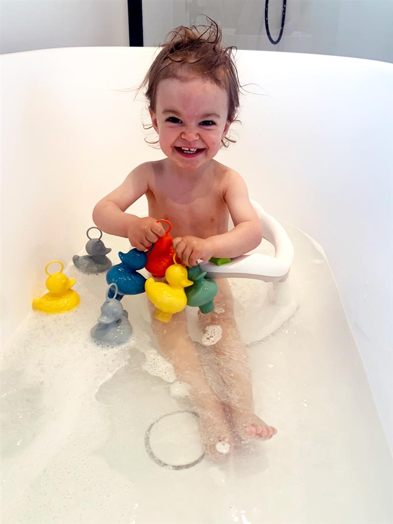 The child can either fish alone or share the experience with another, as there are two fishing rods. A fun game could be to draw numbers on the bottom of the ducks using a waterproof marker and practice counting.