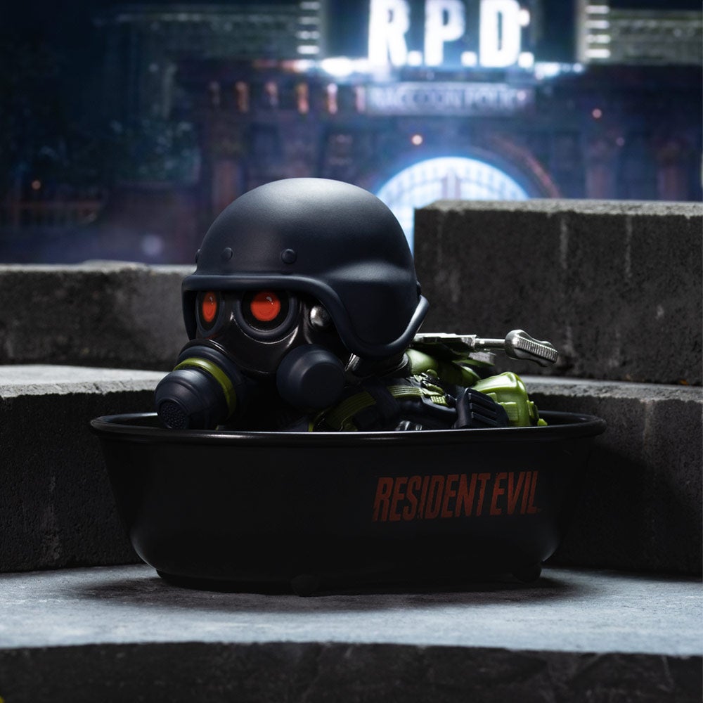 We know little about the ruthless but illusory Hunk aka Grim Reaper. Its reputation as an agent of the Umbrella Corporation is renowned for having carried out the most successful missions and has often been the only one to return. The same is always true, even if it's a duck!