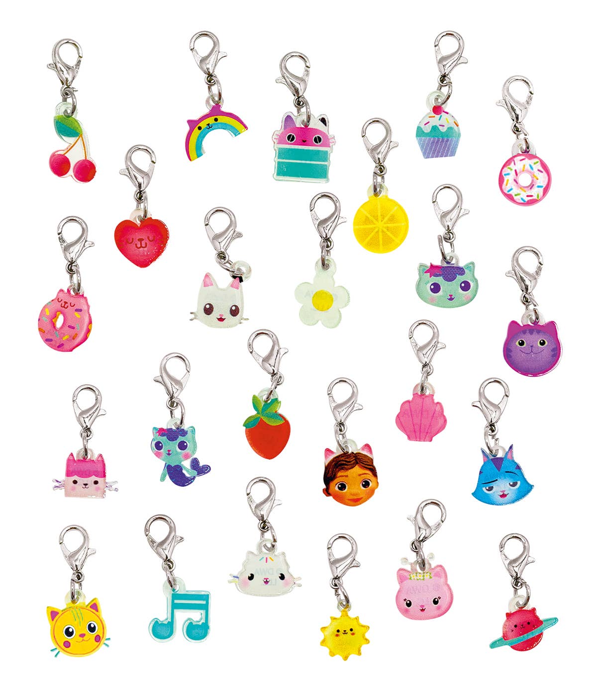 Caja sorpresa de la casa de muñecas de Gabby, cada una con una pulsera y 3 dijes - 24 dijes para coleccionar - 16 piezas surtidas en el expositor de mostrador