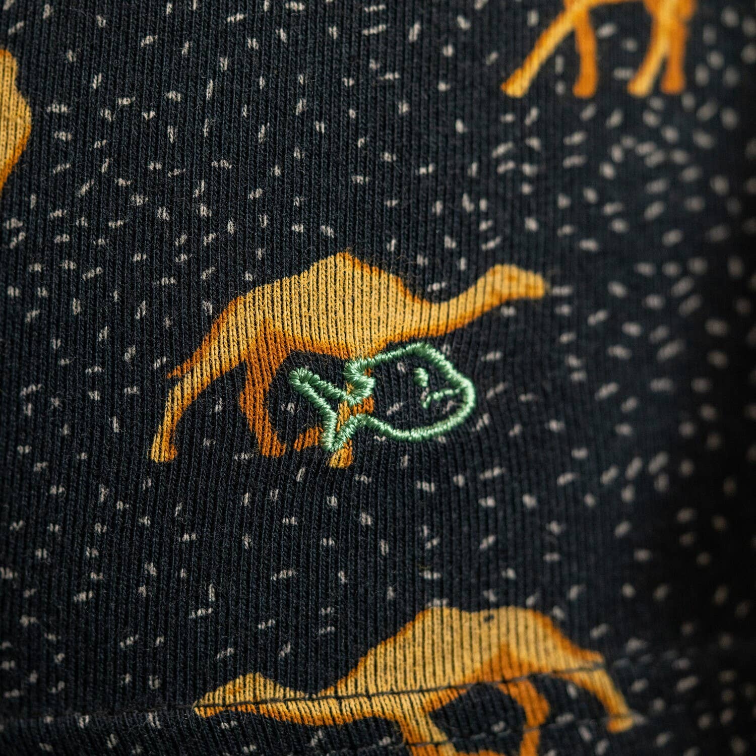 Calzoncillo bóxer de algodón orgánico certificado GOTS Modelo diseñado por nuestro diseñador Elásticos de soporte y confort BILLYBELT Ajuste ceñido y longitud universal. Descripción del patrón: Camellos sobre fondo gris antracita Banda elástica naranja y amarilla moteada