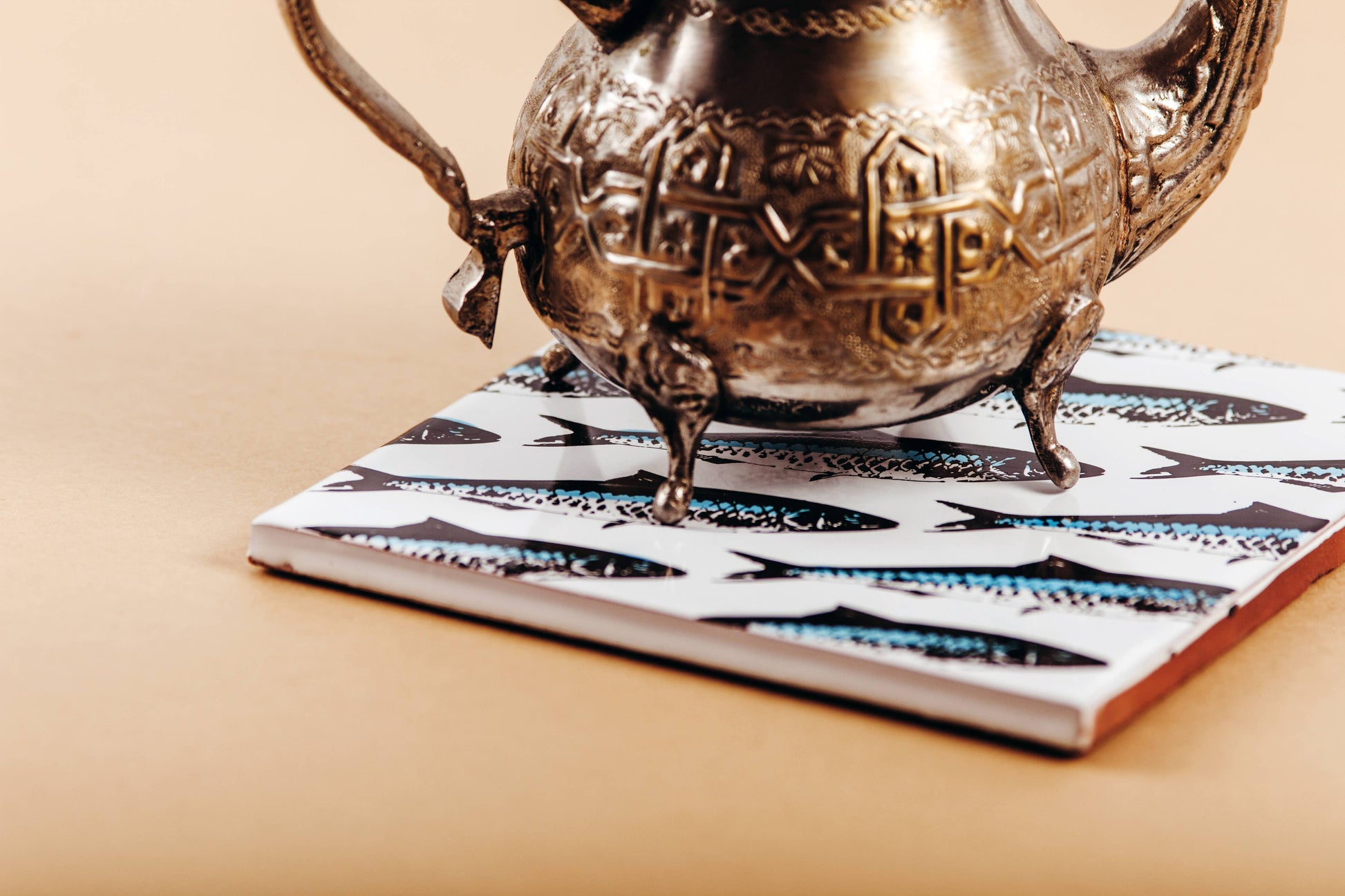Azulejos estampados a mano con serigrafía y acabado aterciopelado en la parte posterior para evitar daños en la mesa.