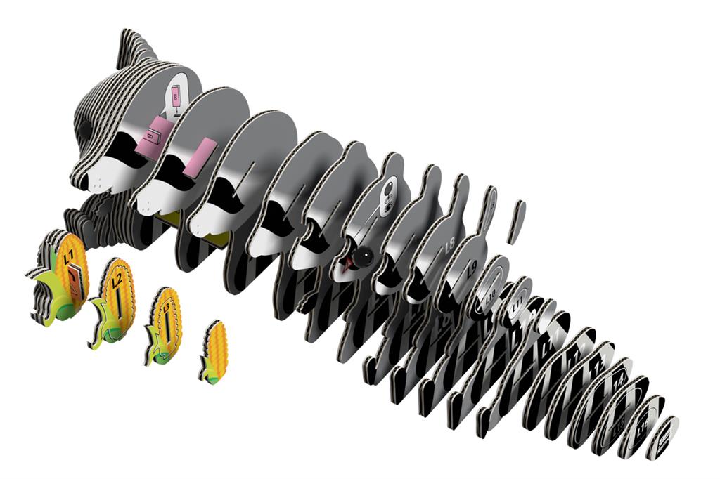 Nuestros productos cumplen al 100% con las normas internacionales de seguridad (EN71-1, 2, 3 y CPSIA). Un paquete EUGY contiene 7 tarjetas planas con piezas numeradas individualmente, listas para su montaje.