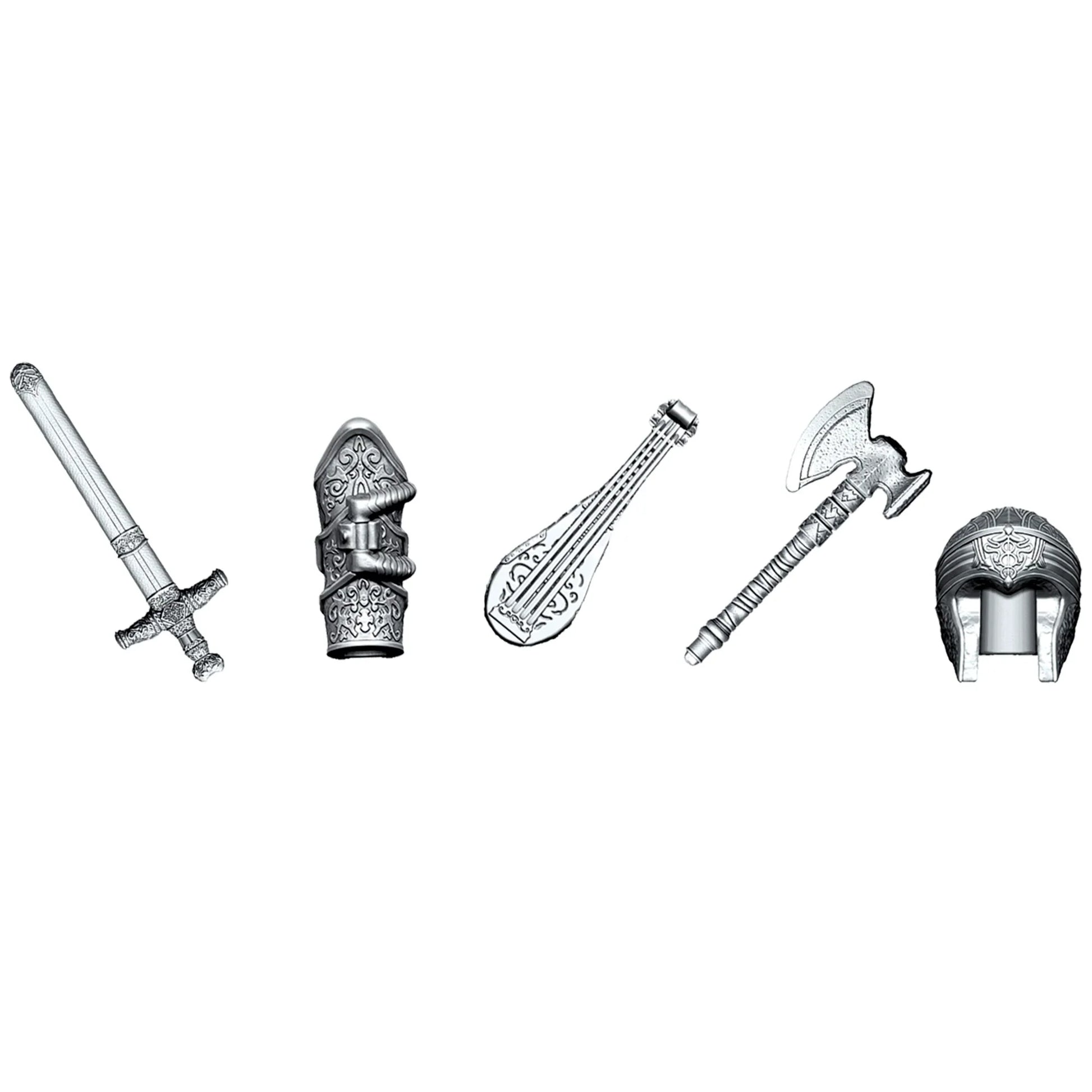 Incluye tablero de juego, 5 fichas, 5 cartas de Personaje, 16 cartas de Aventura, 30 cartas de Magia y Misterio, 9 cartas de Dungeon Master, sobre de Dungeon Master, dado de 6 caras, dado de 20 caras, cartón de 90 monedas de oro y una guía del juego.