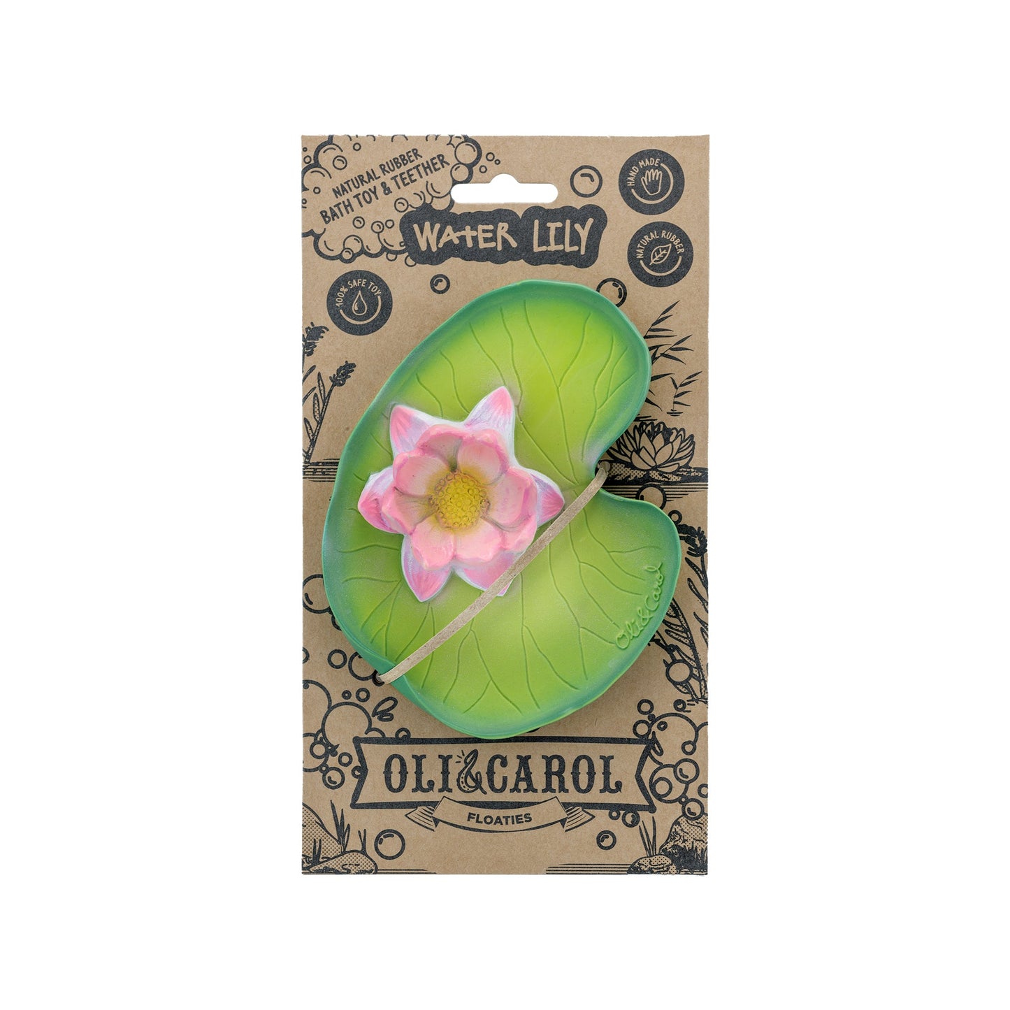 El lirio de agua es un juguete de baño perfecto como anillo de dentición, juguete sensorial y objeto decorativo. Hecho a mano con goma 100% natural y pintada a mano en tonos rosados y verdes con pigmentos naturales.