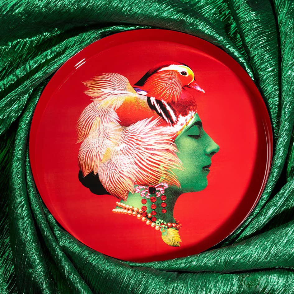 Bandeja decorativa de metal, totalmente hecha a mano. Uso en interiores