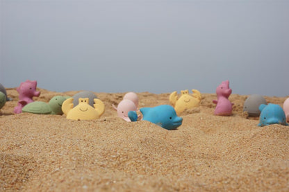 Juguetes de baño y mordedores de caucho natural.