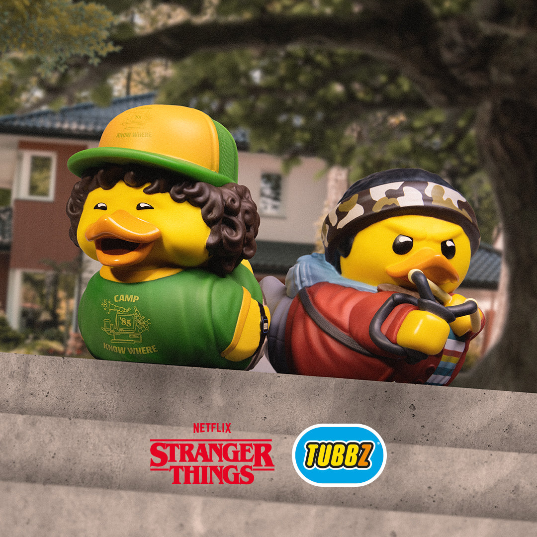 - Caja de presentación: se entrega en una caja de presentación con forma de bañera, con el logotipo Los productos Stranger Things se pueden apilar encima de otros TUBBZ .