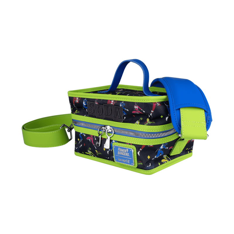 El enfriador presenta un diseño de los Power Rangers saltando a la batalla. Este enfriador tiene un revestimiento aislante, una correa de hombro extraíble, herrajes plateados brillantes, tiradores de cremallera con lengüetas de refresco, logotipo Funko impreso de alta densidad para el revestimiento y está hecho de nailon.