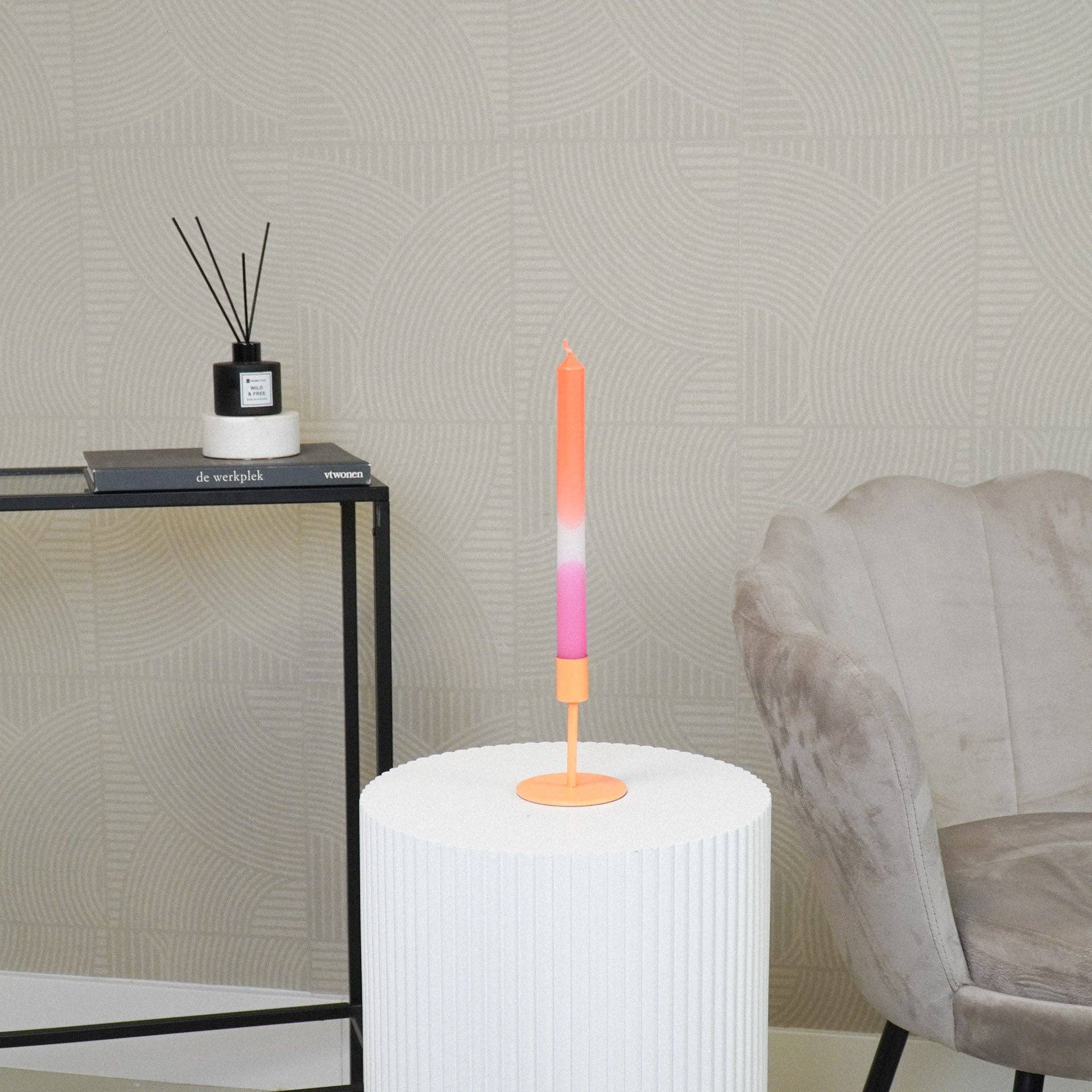 Stijltip: Zet een gekleurde kaars neer die harmonieert met de andere kleuren in je interieur.