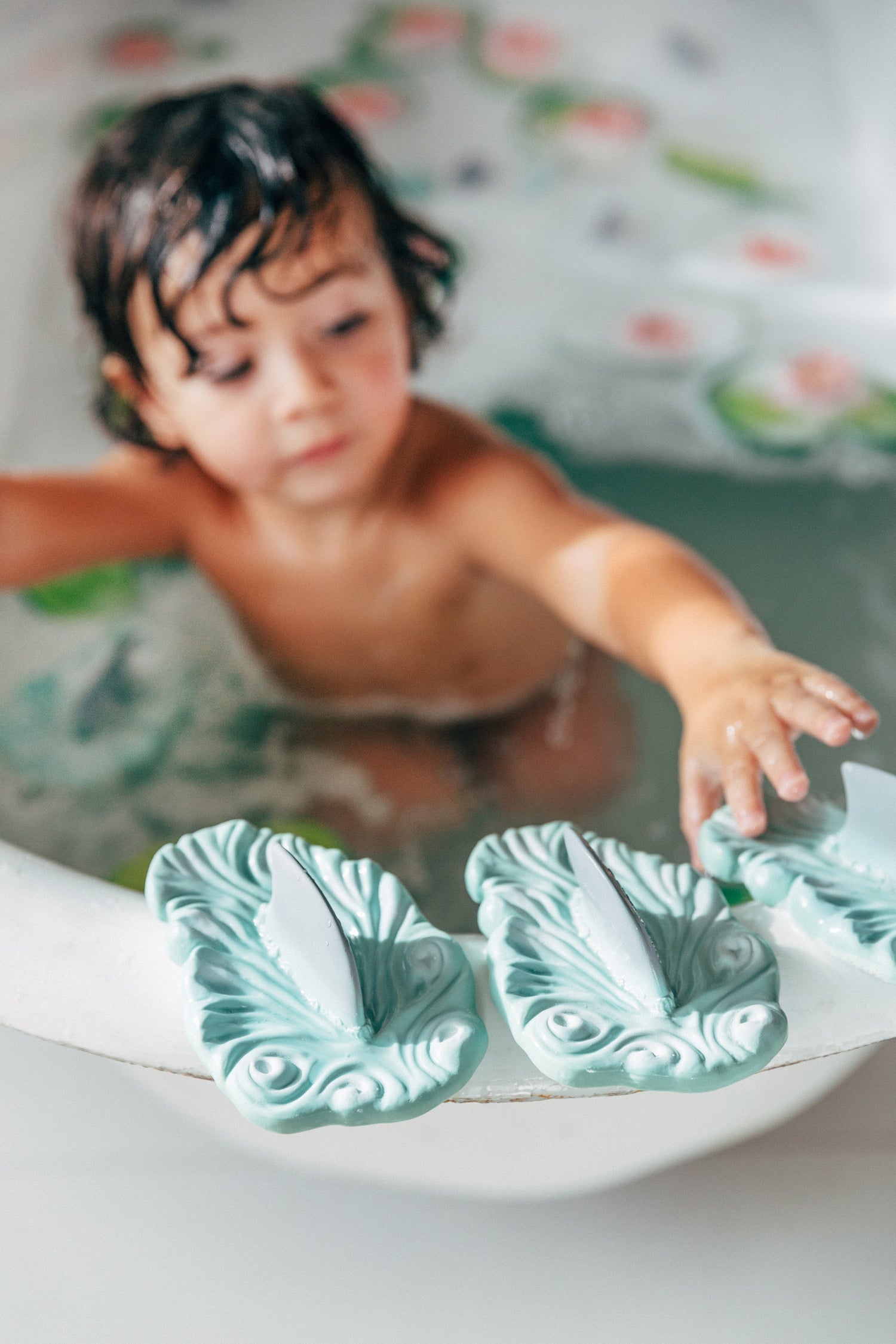 Qui osera nager avec le Water Shark de la marque Oli & Carol? Transformez l’heure du bain en un océan plein de requins. Les vagues de l’océan aideront les enfants à découvrir de nouvelles textures et à se familiariser avec les océans et leur importance sur la planète Terre. Peint à la main dans des tons de bleu ciel, mousse blanche et reflets argentés.