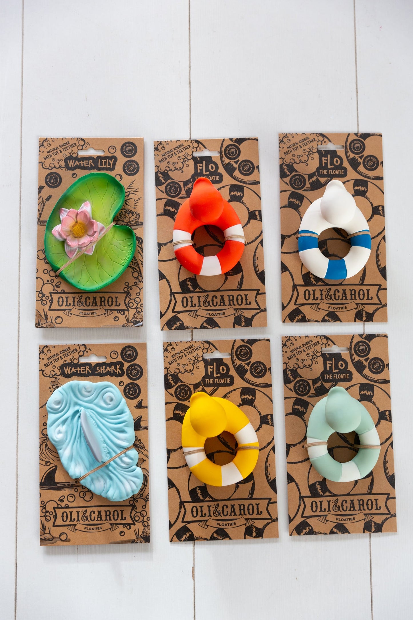 Oli & Carol présente un nouveau concept de jouet de bain. Orienté au moment du bain avec une base intégrée pour le faire glisser facilement sur la surface.