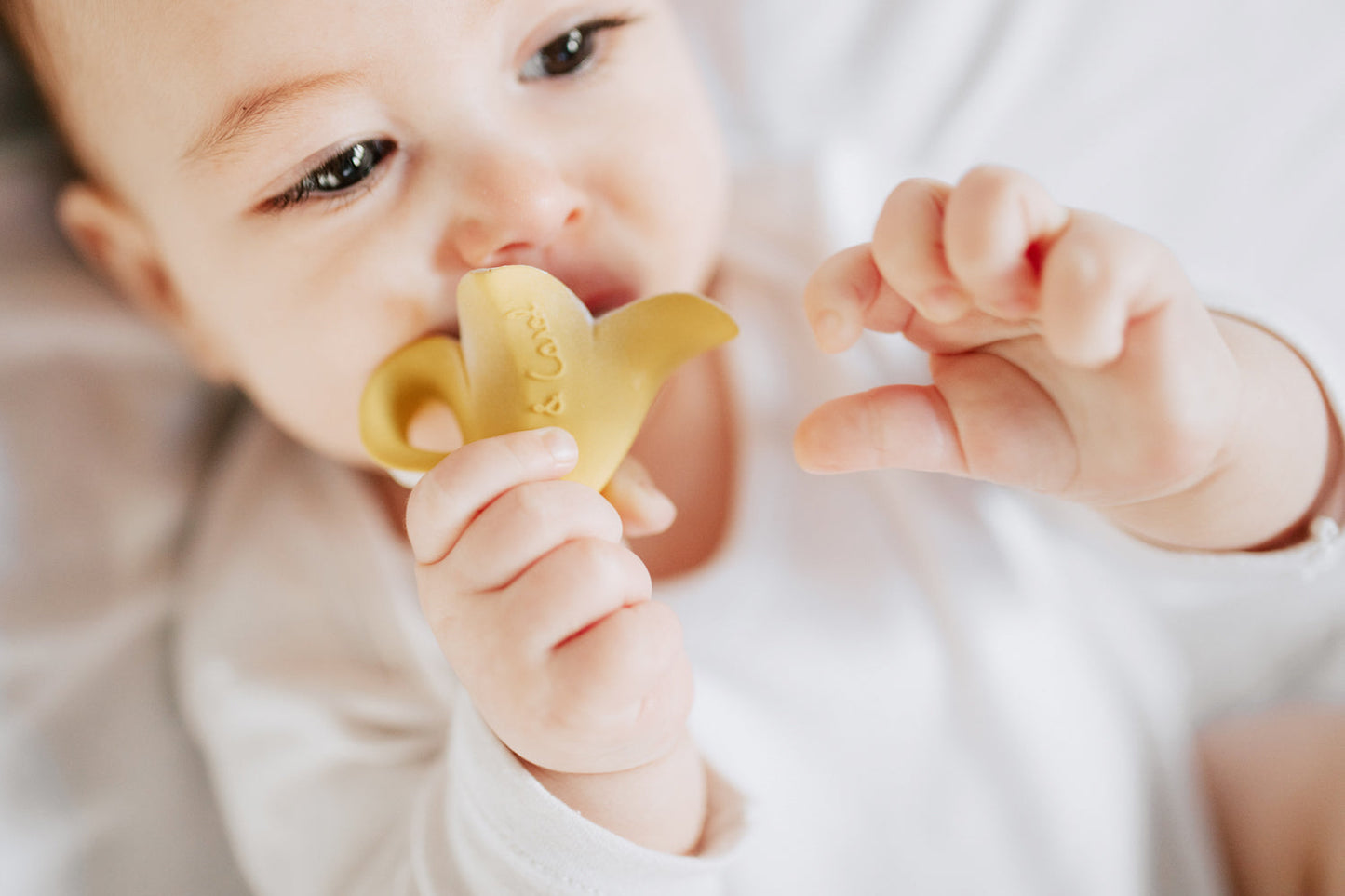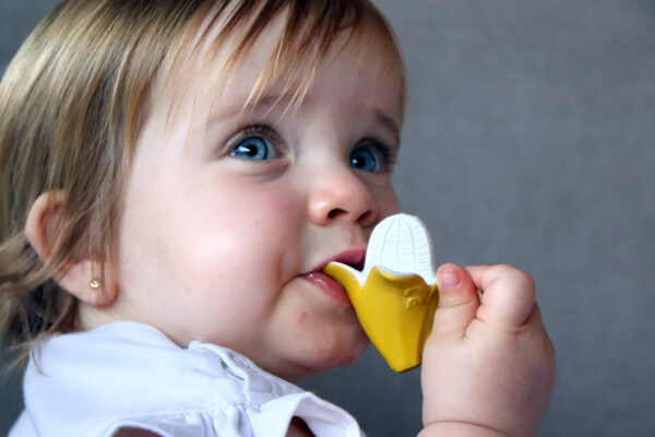 Ce jouet de dentition fruité pour bébé initie les tout-petits à un mode de vie sain.