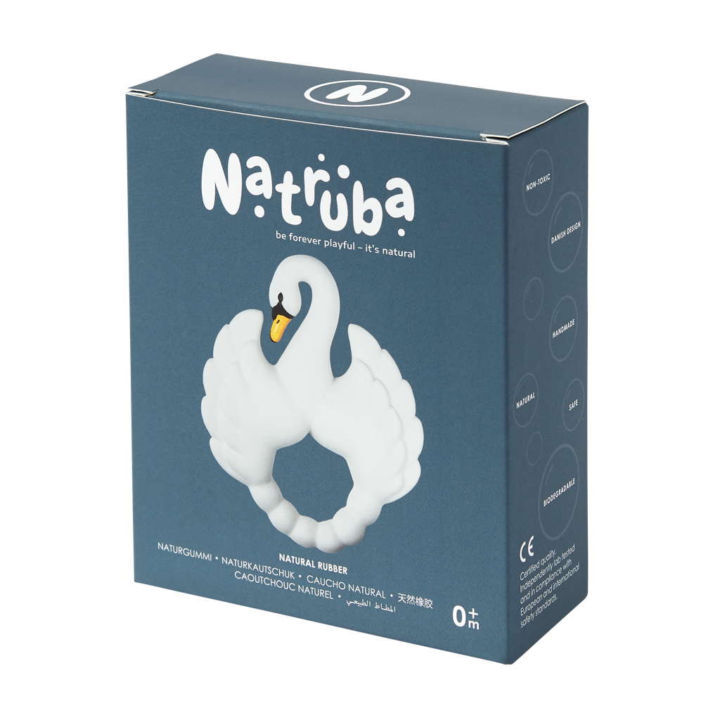 Imaginez ceci : votre bébé babille, et devant votre fenêtre, une famille de cygnes se promène dans l'étang. C'est le début de Natruba et comment l'oiseau national du Danemark - le cygne tuberculé, une créature magnifique et gracieuse, est maintenant un superbe jouet de dentition pour bébé pour le jeu sensoriel et le temps de mastication.