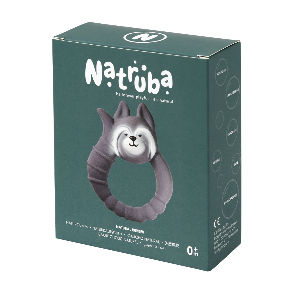 Le raton laveur Natruba est facile à saisir pour les petites mains et un soulagement parfait pour les gencives douloureuses. Le raton laveur a différentes surfaces pour le jeu sensoriel et possède à la fois du caoutchouc naturel souple et dur pour satisfaire toutes les étapes des gencives douloureuses. Les couleurs vives et contrastées stimulent la vue de votre enfant.