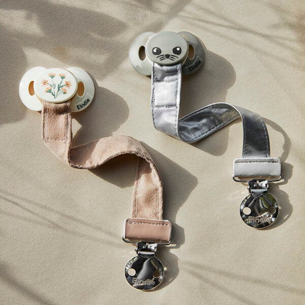 Notre attache-sucette est le seul moyen élégant de s’assurer que la tétine de bébé reste propre. Classique ou décalé, décontracté ou habillé, vous choisissez. Produit phare, il revient après un relooking et un changement de clip. L’anneau en silicone élastique peut s’attacher à presque n’importe quel type de tétines sur le marché et la pince en bois à tout type de vêtement. N’oubliez pas de choisir une tétine Elodie Détails assortie pour compléter la tenue !