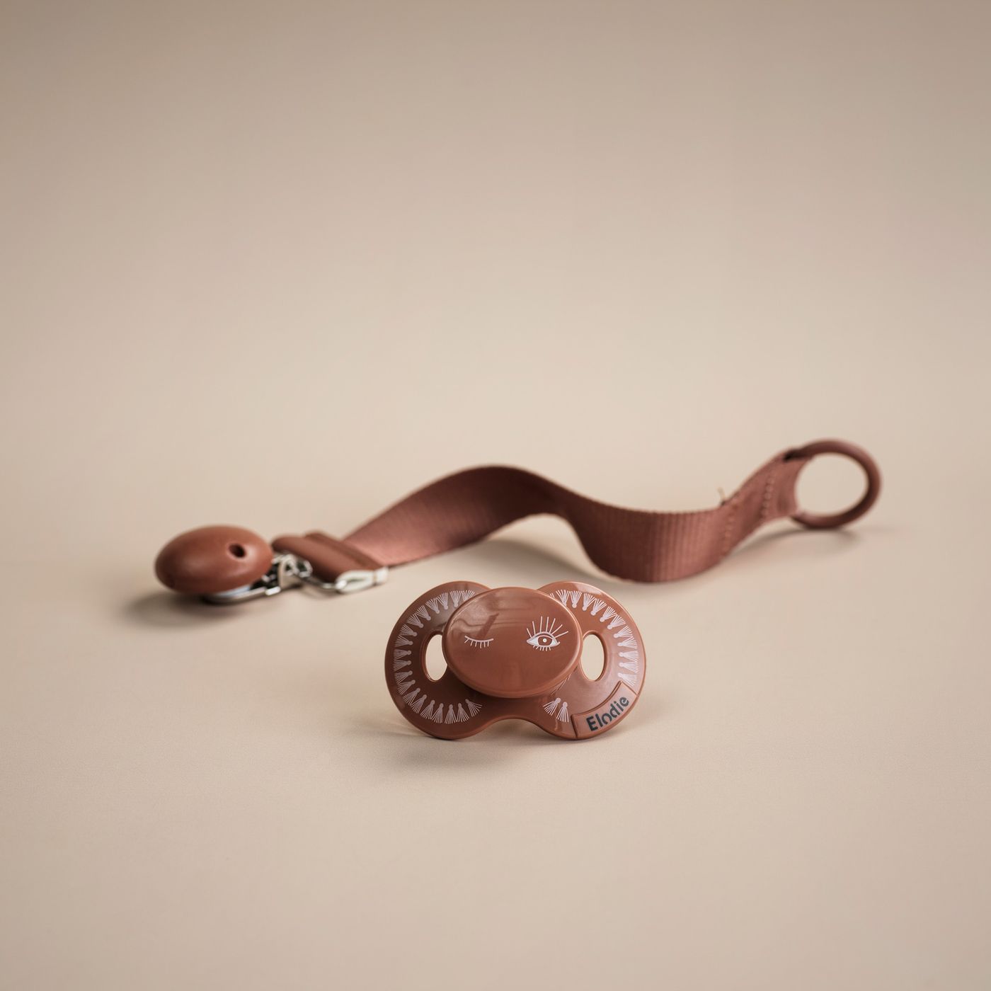 Notre attache-sucette est le seul moyen élégant de s’assurer que la tétine de bébé reste propre. Classique ou décalé, décontracté ou habillé, vous choisissez. Produit phare, il revient après un relooking et un changement de clip. L’anneau en silicone élastique peut s’attacher à presque n’importe quel type de tétines sur le marché et la pince en bois à tout type de vêtement. N’oubliez pas de choisir une tétine Elodie Détails assortie pour compléter la tenue !