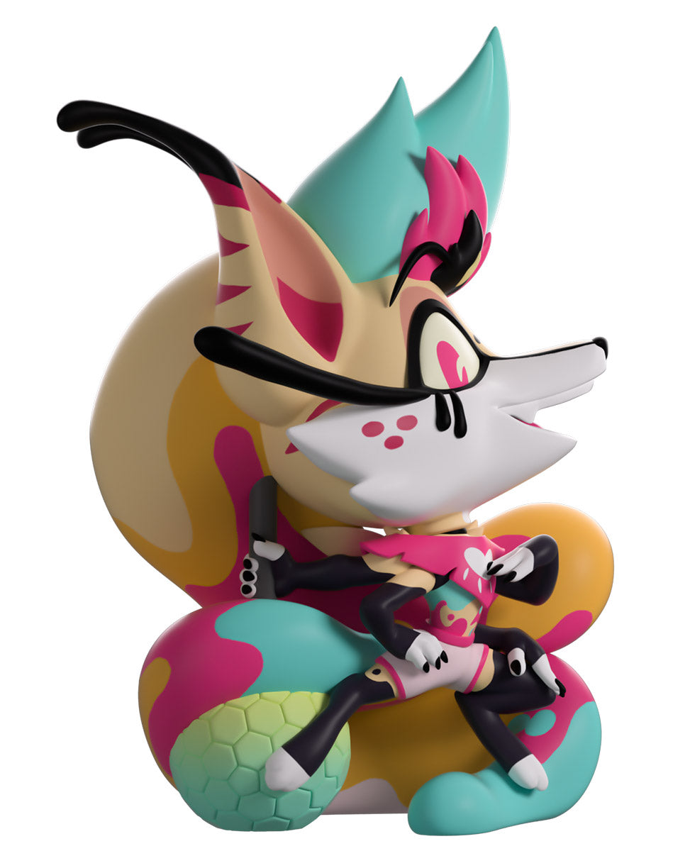 Beelzebub est arrivé chez Youtooz pour organiser la fête la plus spectaculaire du monde, et tu es invité ! Se pavanant à 11,7 cm de hauteur avec un grand sourire s'étendant sur son visage de renard blanc avec des taches d'encre brillantes sur les joues et de longs cils qui s'étendent sur les côtés, des cils turquoise et rose jaillissent d'entre deux oreilles bouclées pour descendre dans son dos en taches colorées qui s'enroulent autour d'une boule à motif nid d'abeille. Toujours la vie absolue de la fête, Beelzebub porte un haut coloré qui correspond à sa queue et a un col pointu avec un cœur sur la poitrine avec un short court rose. L'extérieur de son emballage voit leur silhouette légère et galbée sur un fond orange foncé, tandis que l'intérieur présente une énorme boule disco en nid d'abeille qui brille sur les murs lumineux. La pochette de protection est ensuite décorée de rayures jaunes diagonales et imprimée du logo « Helluva Boss » car leur silhouette peut être vue à travers la grande fenêtre d'affichage transparente sur le devant. Cet objet de collection est livré dans une pochette extérieure mate, gaufrée et protectrice et dans un protecteur en plastique de taille personnalisée pour une protection maximale pendant l'expédition.