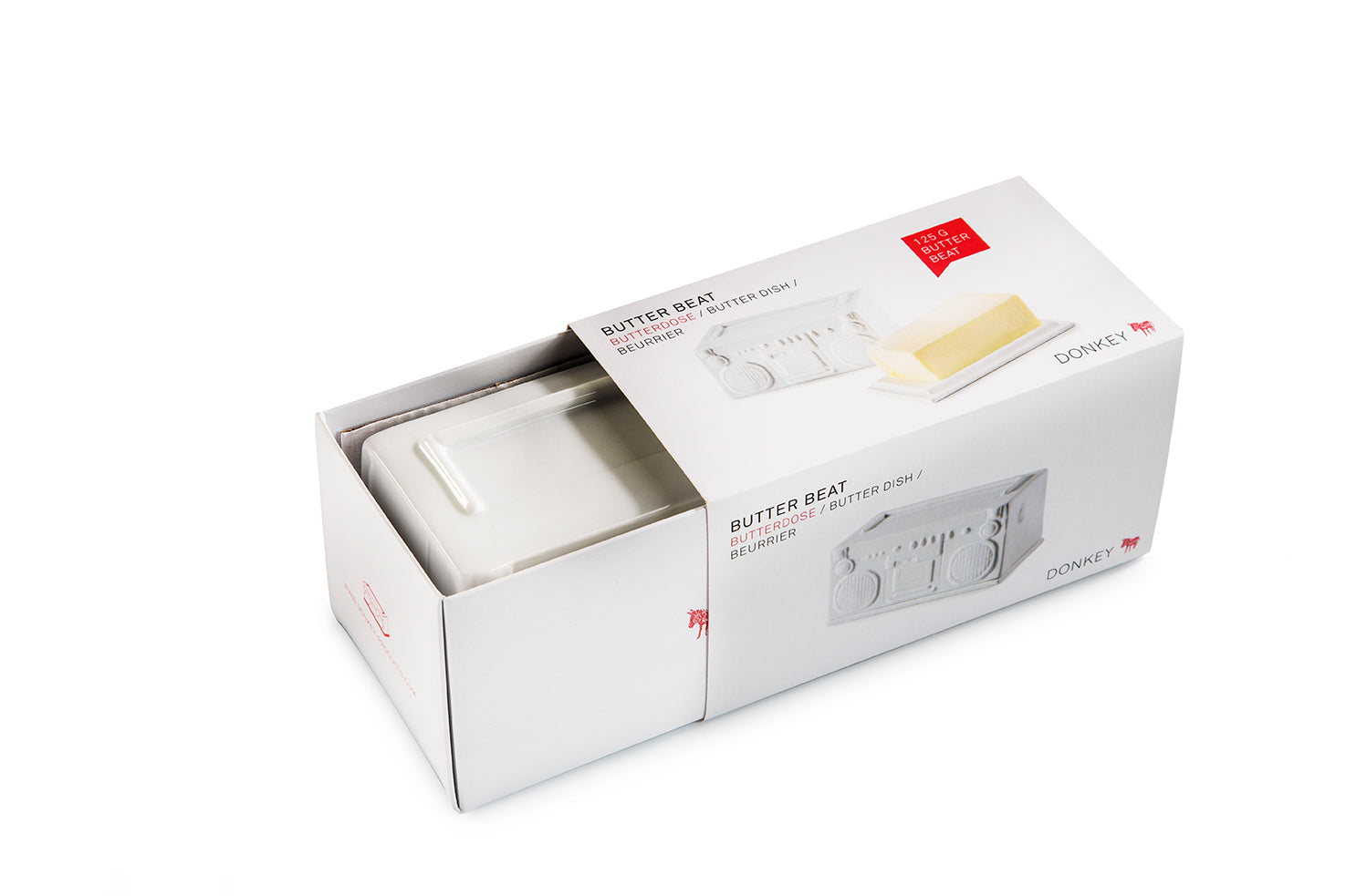 « Chérie, pourrais-tu, s'il te plaît, pousser le conteneur ici ? » On pourrait l'entendre à votre table de petit-déjeuner comme ça. Les deux boîtes Butterland de Donkey - pour 125 g du meilleur beurre - sont tout simplement charmantes dans n'importe quel environnement. Tout au beurre, non ?