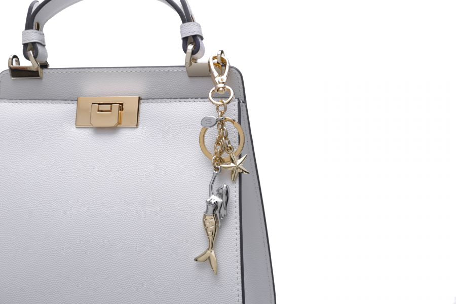 Sirène Dorée et argentée avec étoile de mer doré, pompon blanc