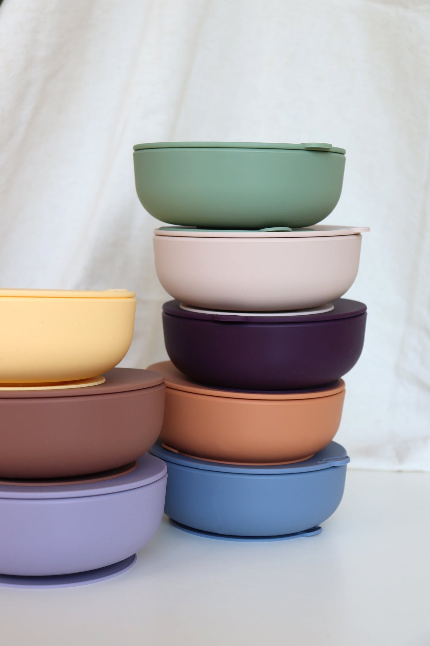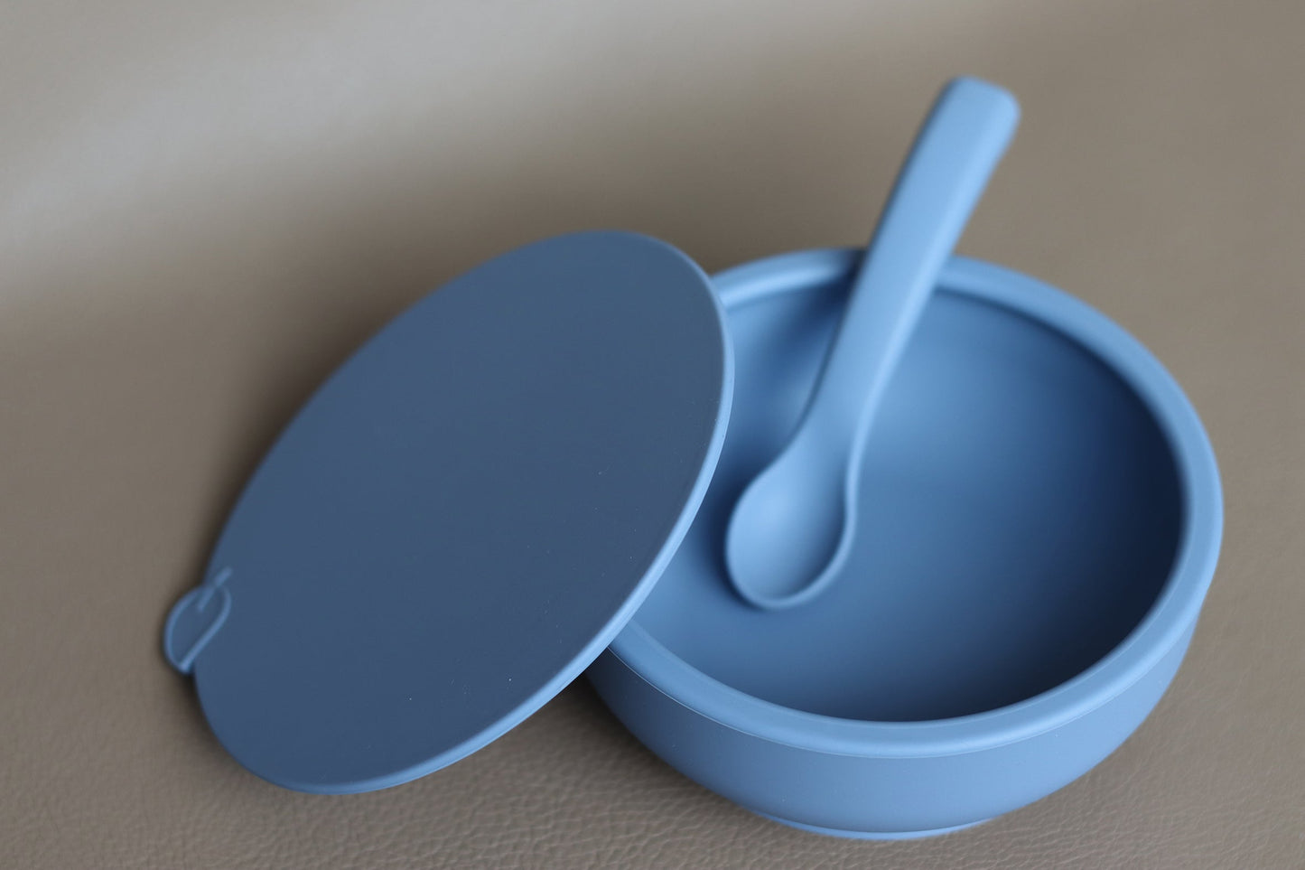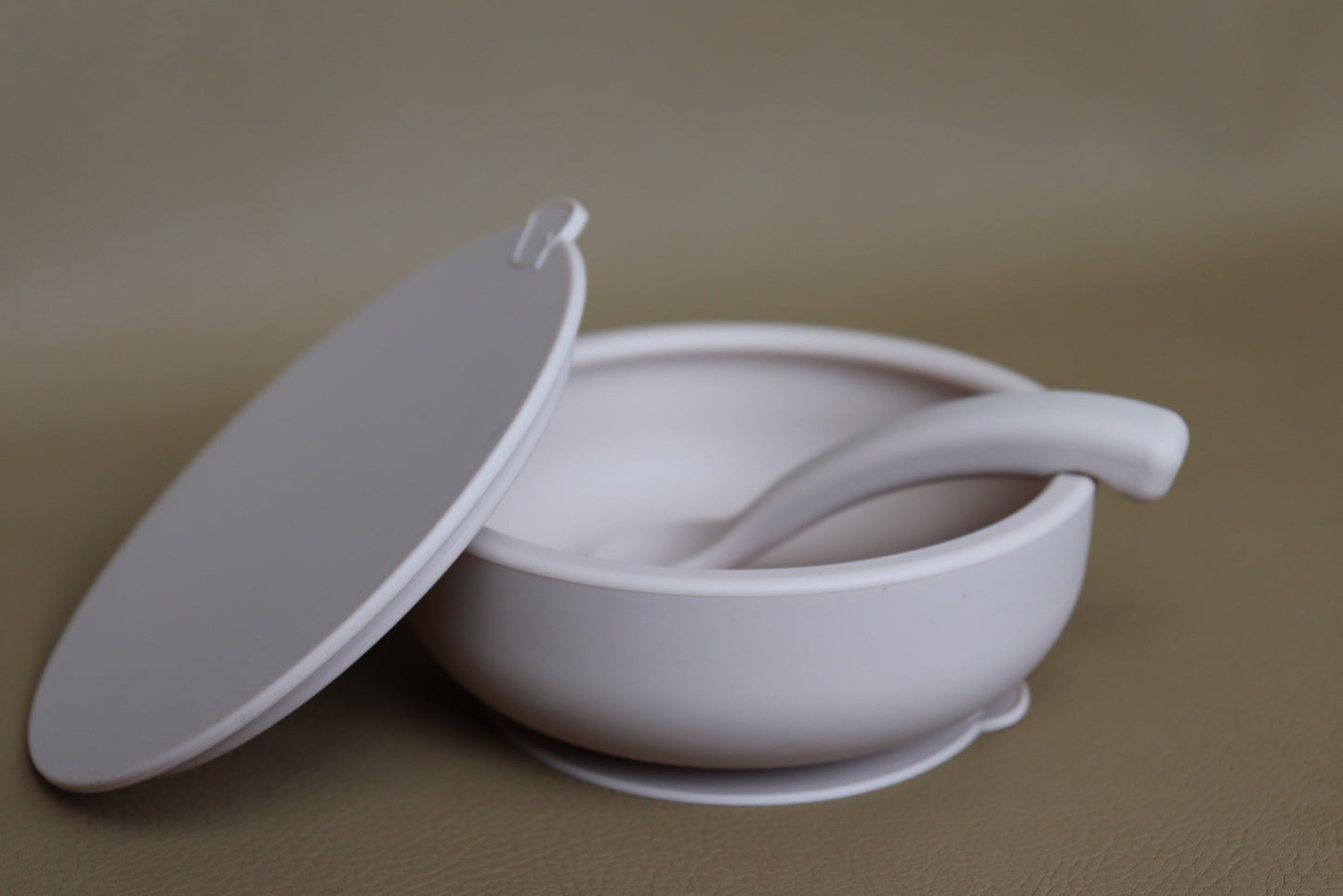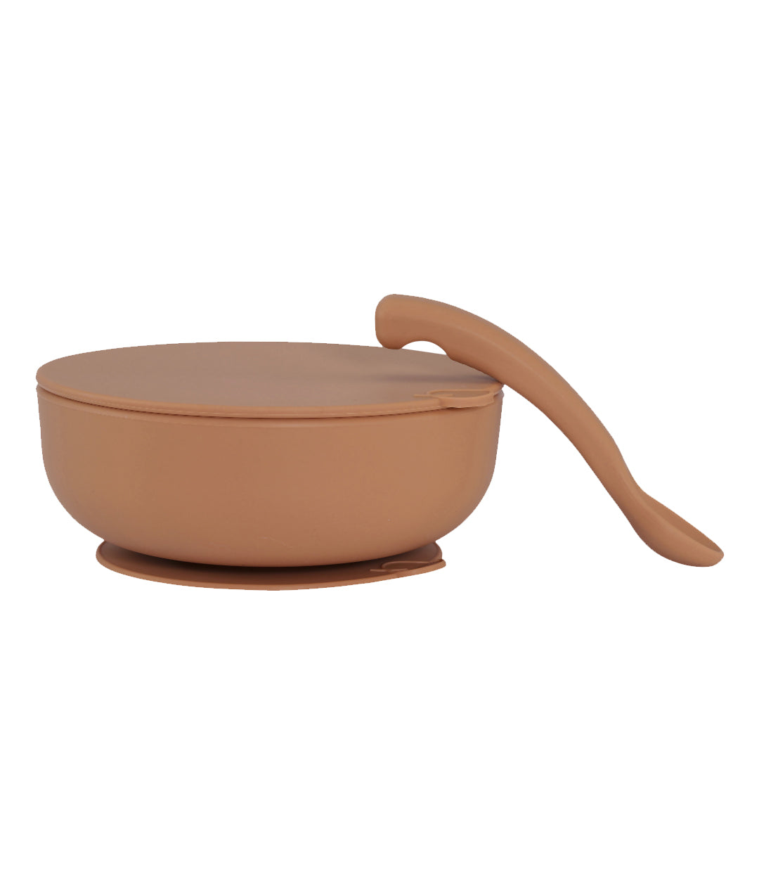 Ce bowl à ventouse, nous pensons, qu’il n’y pas mieux (en toute modestie). Le bowl se fixe avec la ventouse, et s’incline légèrement pour ne pas en mettre partout. Il se relâche avec un appui sur la feuille, et avec son couvercle, il peut garder les restes directement au frigo. Cuillère ergonomique pour adulte et enfant comprise.