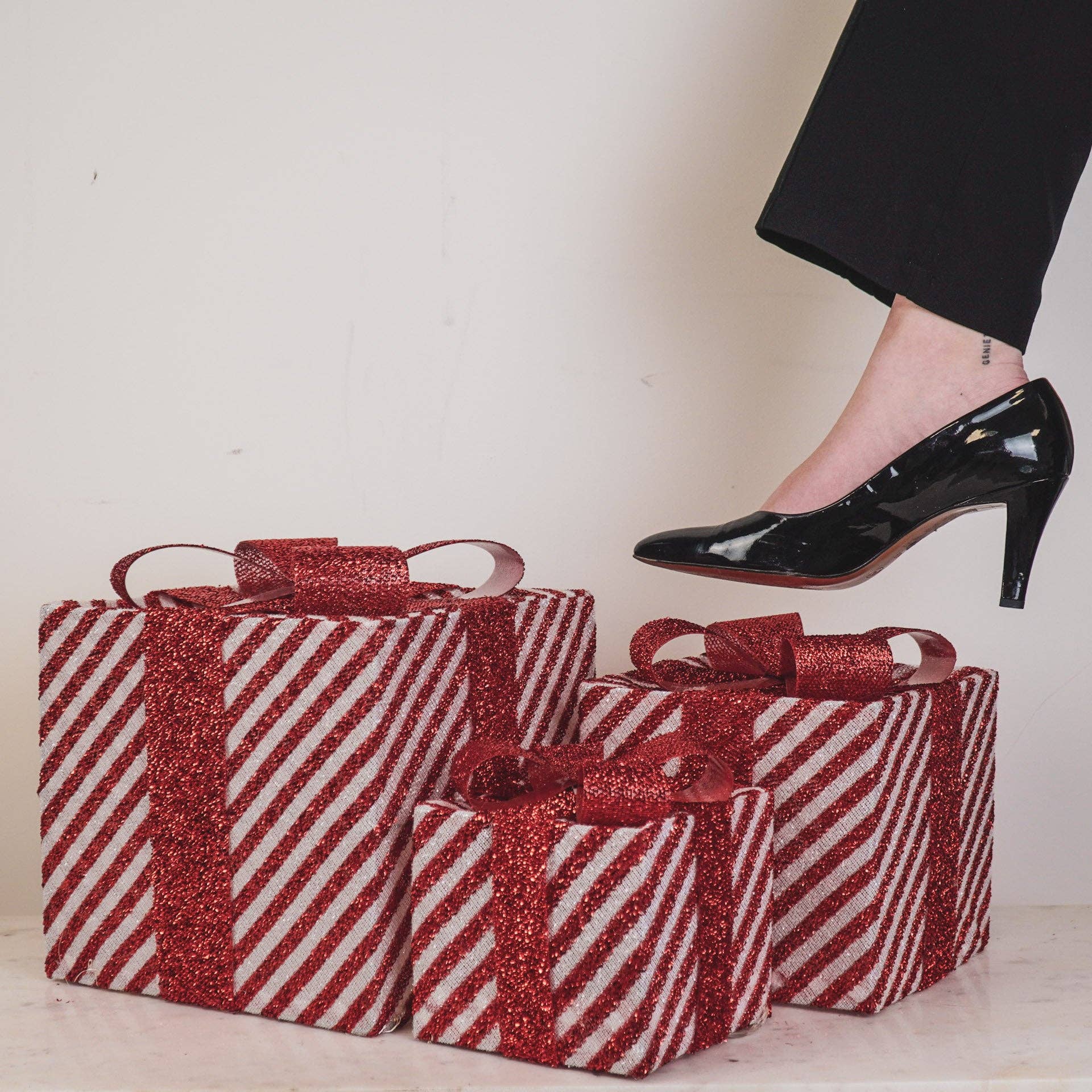 Cadeau de Noël à LED - S3 - Polystyrène - Rouge/Blanc-15/20/25cm
