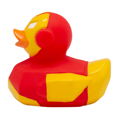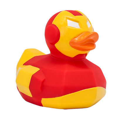 Ce canard avec son armure rouge et or est un cadeau idéal pour tous les techniciens et les fans de bandes dessinées.
