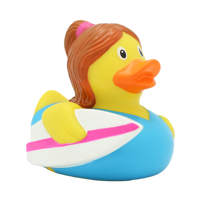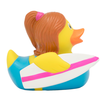 Chers amis surfeurs de Shaka! Ce canard surfeuse vient surtout d'Hossegor et est maintenant à la recherche d'un partenaire de surf qui partage sa passion. La surfeuse canard apporte également une excellente planche aux accents girly sur laquelle aucune vague n'est trop haute et aucun courant trop fort pour elle. Un grand objet de collection pour tous les amateurs d'eau, les fans de voyage et les amis d'aloha.