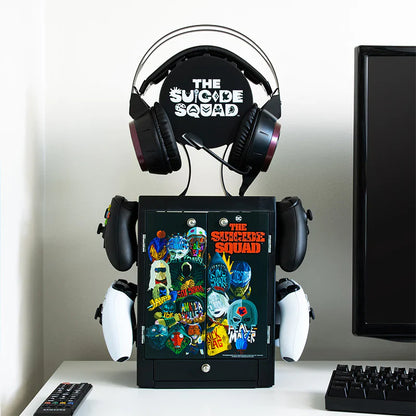 La rumeur veut que la Suicide Squad aime se détendre avec des jeux après une longue journée de missions pour l'énigmatique A.R.G.U.S. et il semble que cet accessoire de jeu soit en quelque sorte l'un des favoris de leur arsenal ! Ce casier de jeu a tout pour plaire car il peut contenir jusqu'à 10 de vos jeux Xbox One/Xbox Series X/S, jeux PS4/PS5 ou films préférés. Il dispose également d'une tonne d'espace pour stocker tous vos éléments essentiels de jeu, y compris vos contrôleurs, câbles et autres accessoires. Fixez vos écouteurs à la mode avec le support pour écouteurs sur le dessus du casier.