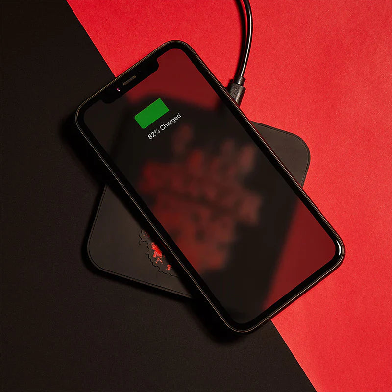 La dernière chose dont vous avez besoin est de manquer de charge lorsqu'un Demogorgon est sur vos talons. Assurez-vous d'être toujours sous tension avec cet élégant tapis de charge sans fil ultra-rapide officiel de Stranger Things de 10 W, idéal à placer sur votre bureau, table de chevet et plus encore ! Fabriqué à partir de caoutchouc antidérapant avec un design noir et rouge vif de la fête et l'envers qui se profile en dessous, vous pouvez dire adieu aux câbles emmêlés avec style.
