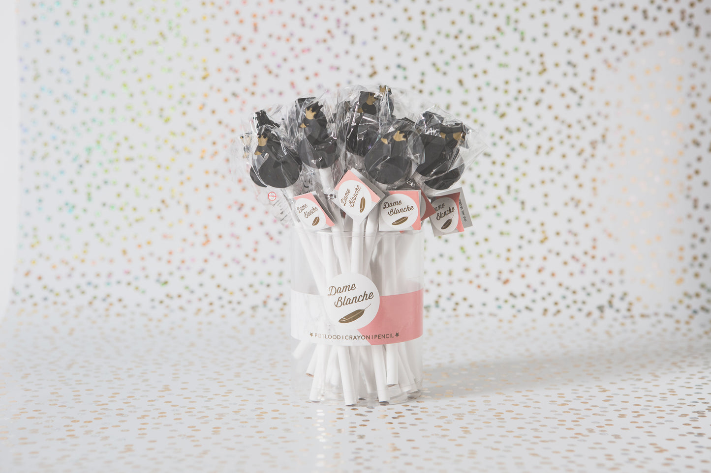 Ecrivez des lettres comme une grande Dame Blanche, avec gomme. Vendu par 24 dans un présentoir.