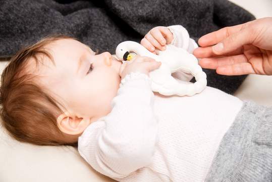 - Les jouets en caoutchouc naturel doivent être nettoyés avec de l'eau légèrement savonneuse et un chiffon humide, ne pas utiliser de lave-vaisselle ni stériliser au four à micro-ondes.