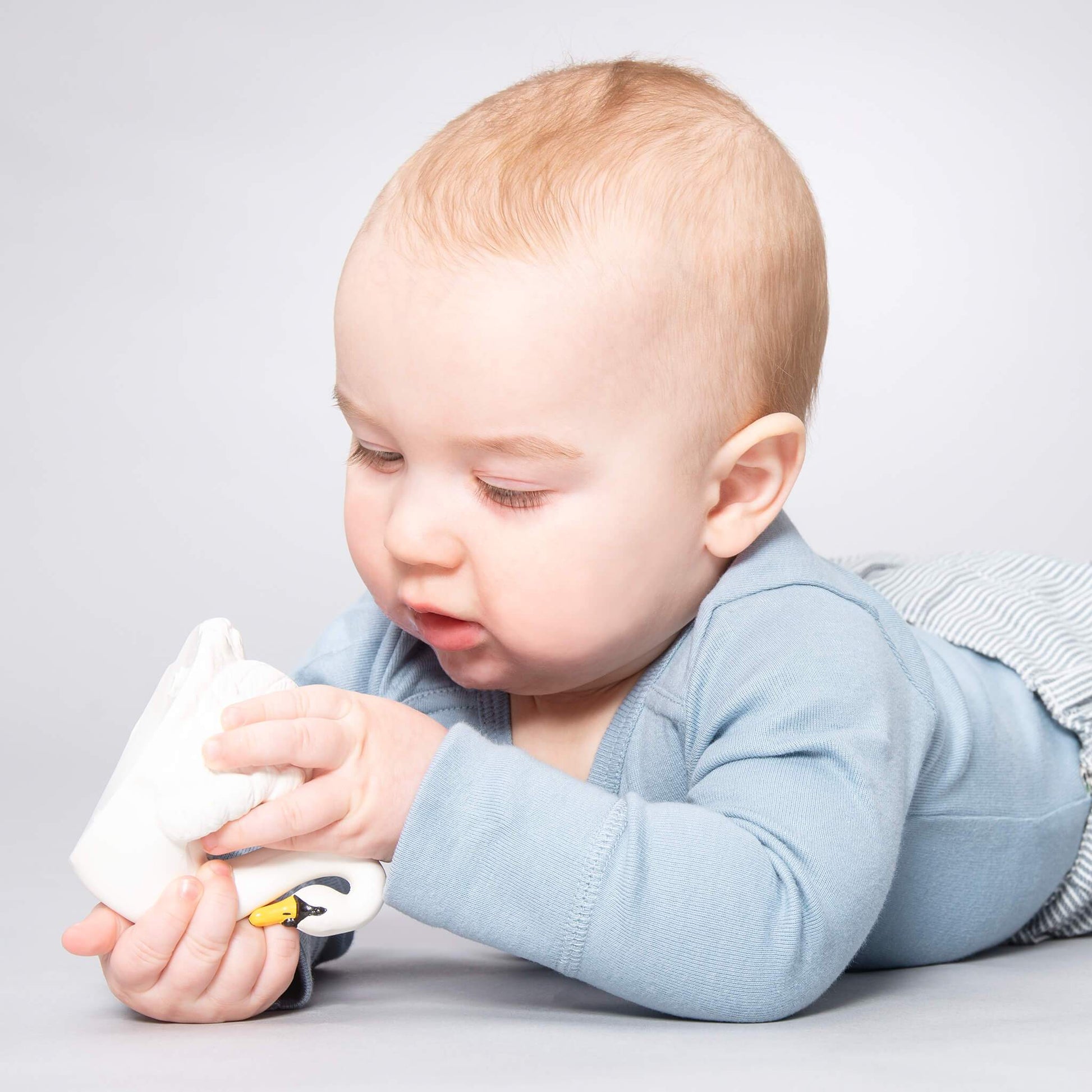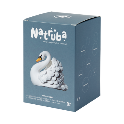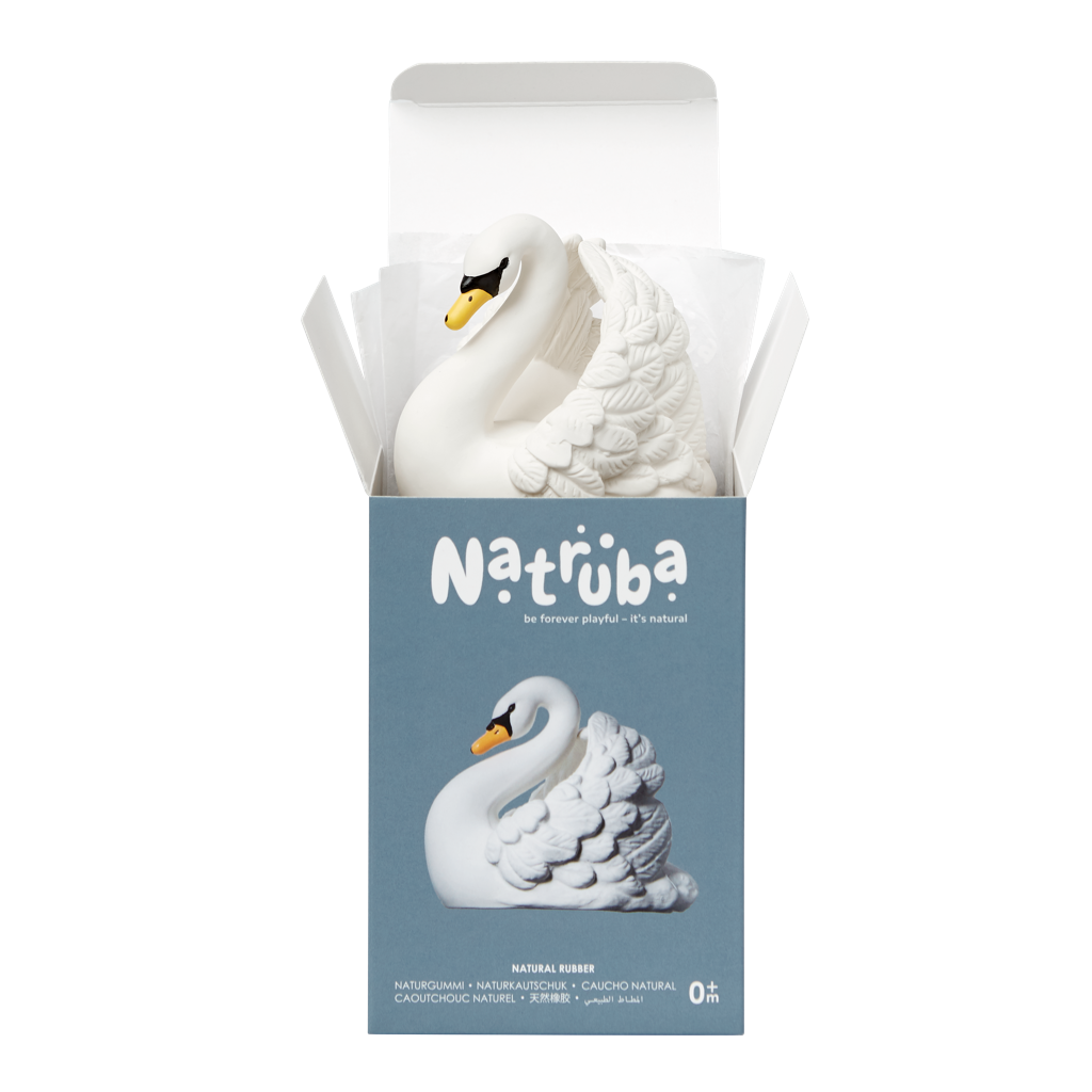 Imaginez ceci : votre bébé babille, et devant votre fenêtre, une famille de cygnes se promène dans l'océan. C'est le début de Natruba et comment l'oiseau national du Danemark - le cygne tuberculé, une créature magnifique et gracieuse, est maintenant un jouet étonnant pour le jeu sensoriel, la mastication et l'heure du bain. Ce jouet élégant est fabriqué à la main en caoutchouc naturel et soigneusement sculpté et peint à la main avec des pigments naturels.