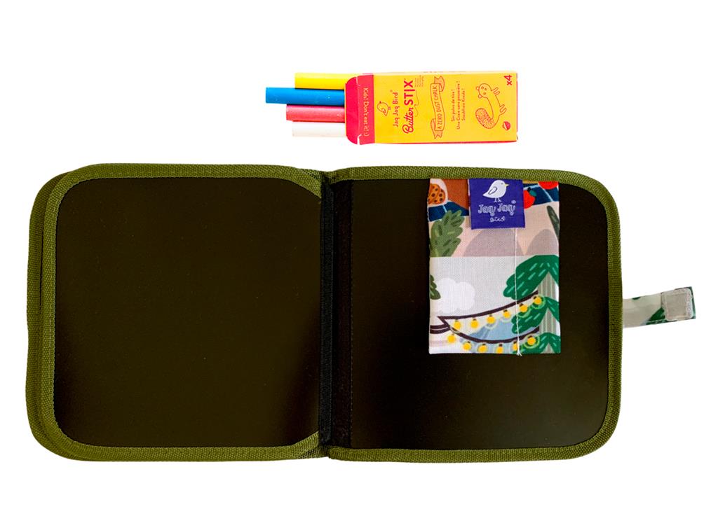 Le cahier Jaq Jaq Bird réutilisable ne quittera plus les sacs de vos enfants. Leger, souple et résistant il offre 8 pages à remplir de dessins et de couleurs avec les craies Butter Stix sans poussière qui sont glissées dans leur petit étui. Un support de création idéal que l’on emmène partout!
