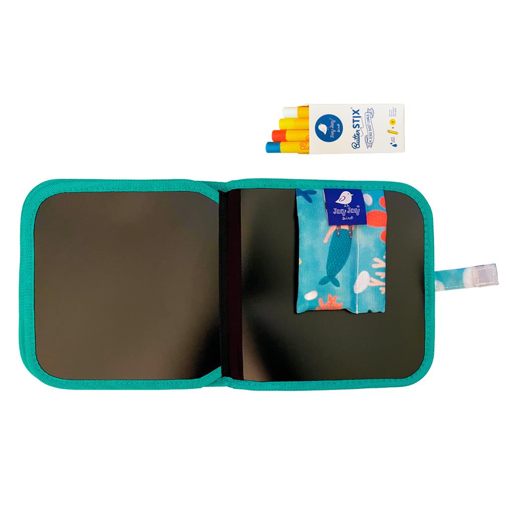 Le cahier Jaq Jaq Bird réutilisable ne quittera plus les sacs de vos enfants. Leger, souple et résistant il offre 8 pages à remplir de dessins et de couleurs avec les craies Butter Stix sans poussière qui sont glissées dans leur petit étui. Un support de création idéal que l’on emmène partout!