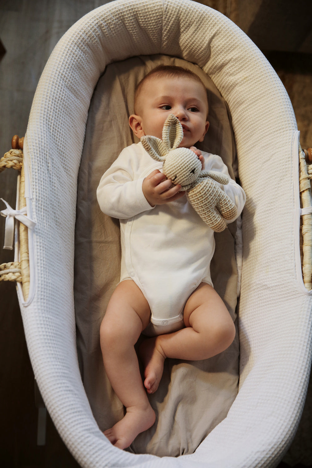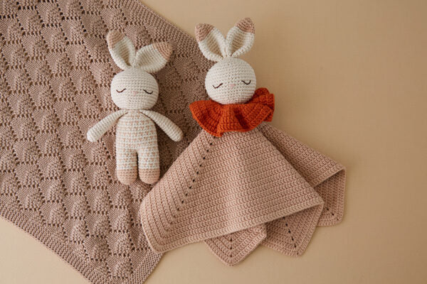 La famille Patti Oslo s’agrandit avec ce lapin très doux crocheté à la main pour vos petits. C’est un jouet sûr avec lequel bébé pourra jouer ou dormir. Un excellent cadeau pour un petit.