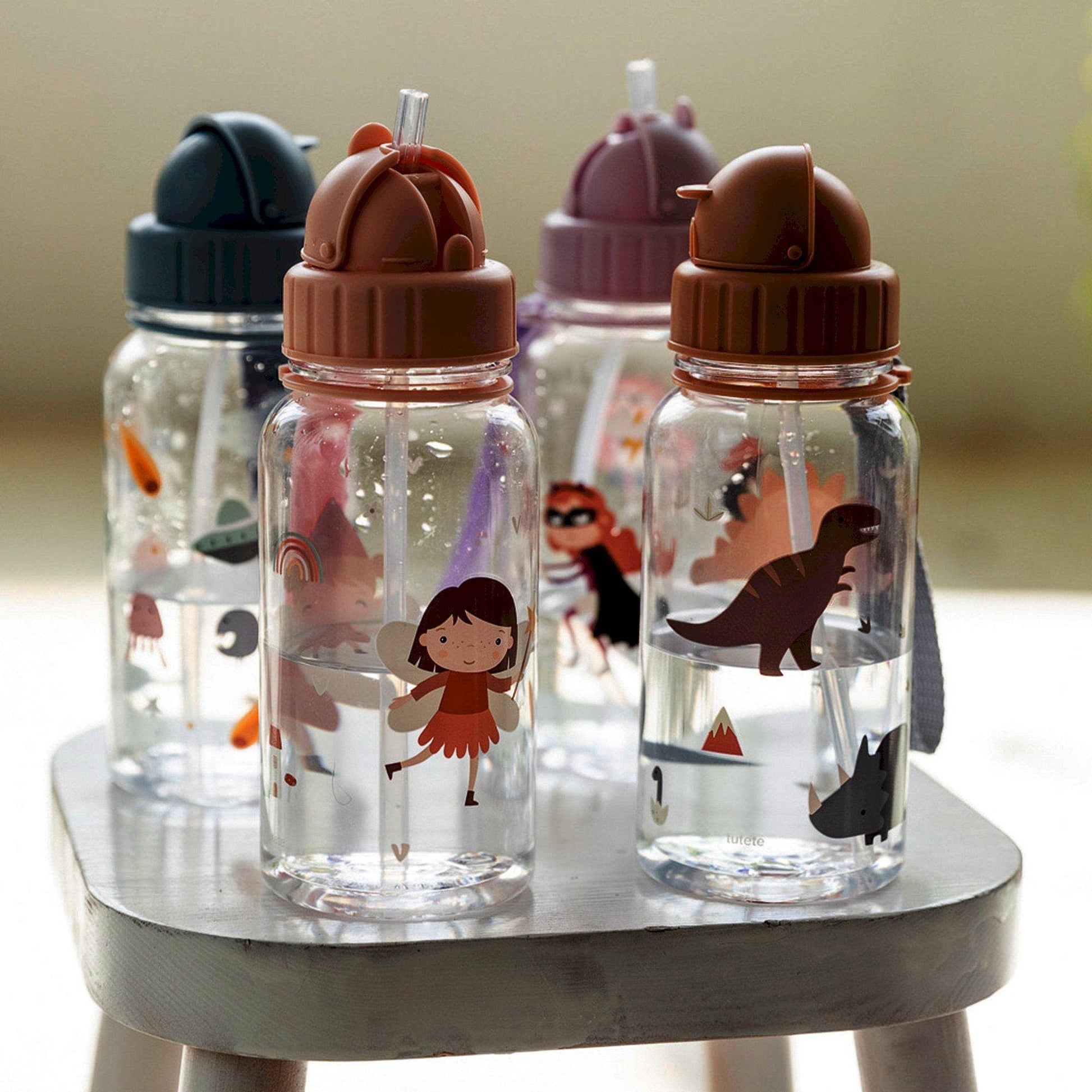 Bouteille en plastique Tritan, exclusive de Tutete La bouteille a une paille en silicone rabattable qui sort automatiquement lorsqu'on ouvre le couvercle et est idéale pour l'école.