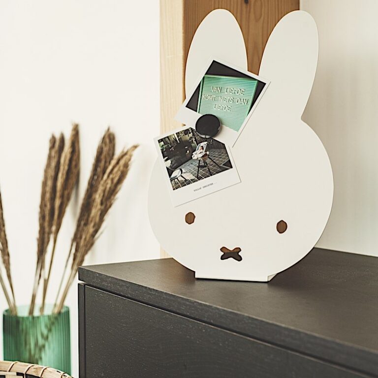 Un tableau aimanté en forme de MIFFY, qui peut recevoir tous vos magnets et notes. Produit entièrement fabriqué en Belgique.