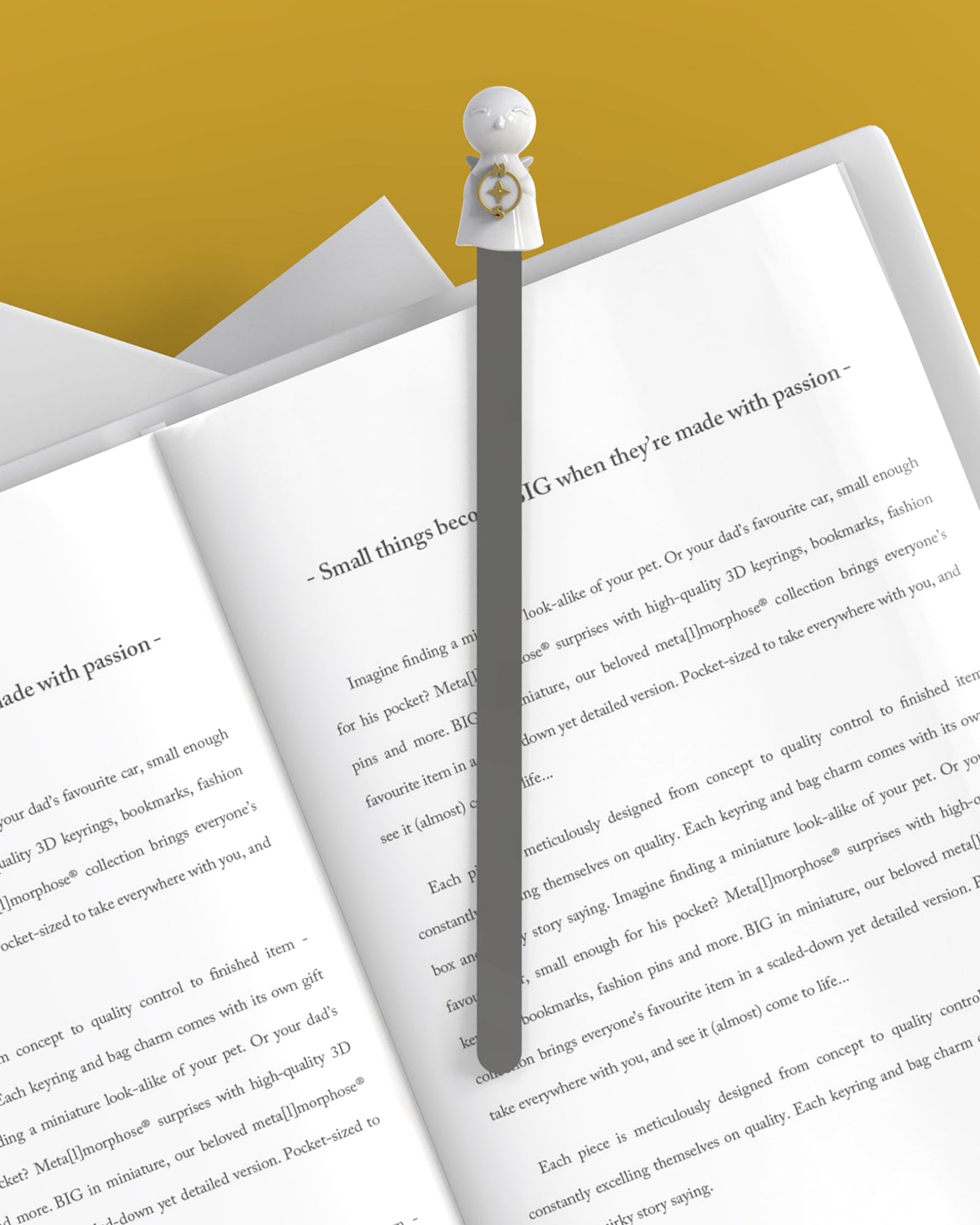 Marque Page Ange blanc avec une boussole dorée en métal de Metalmorphose