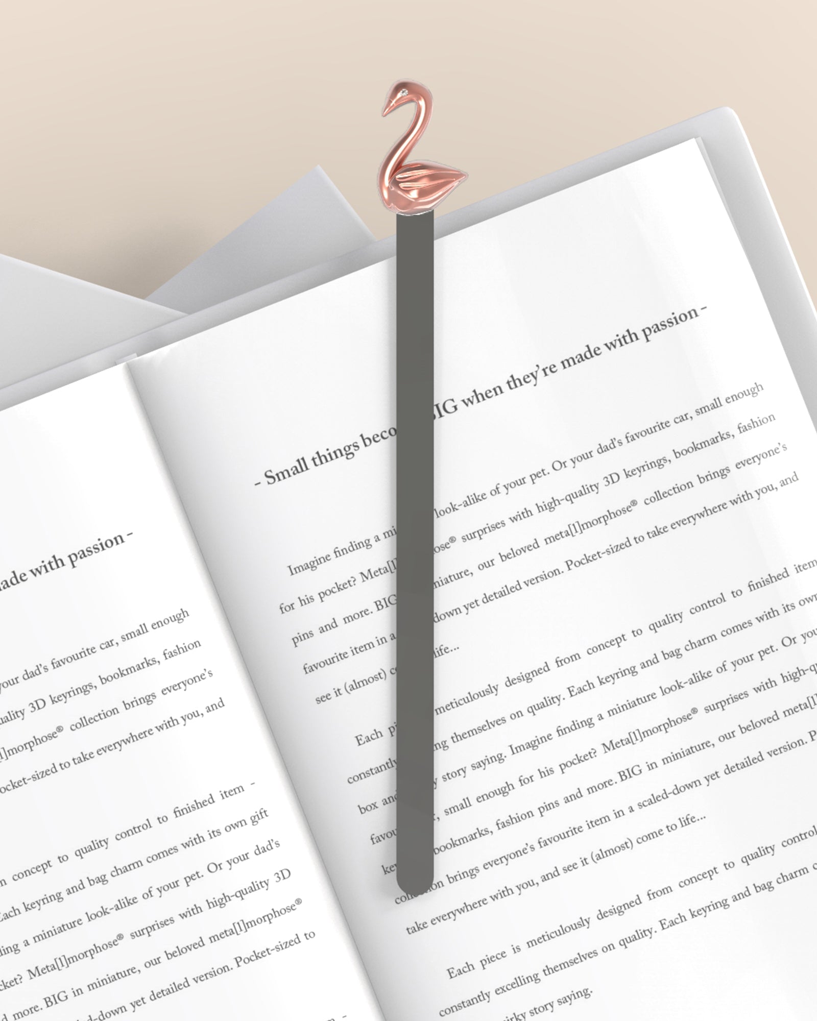Cygne Marque Page en métal or rose Metalmorphose