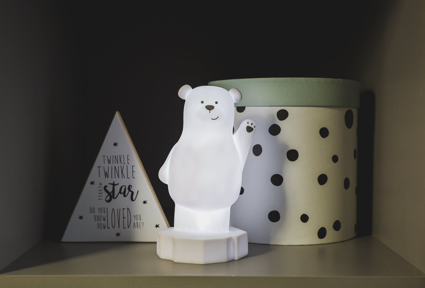 Ours Lou en Medium Led, qui s’allume 45sec. au toucher. Rassurant la nuit.