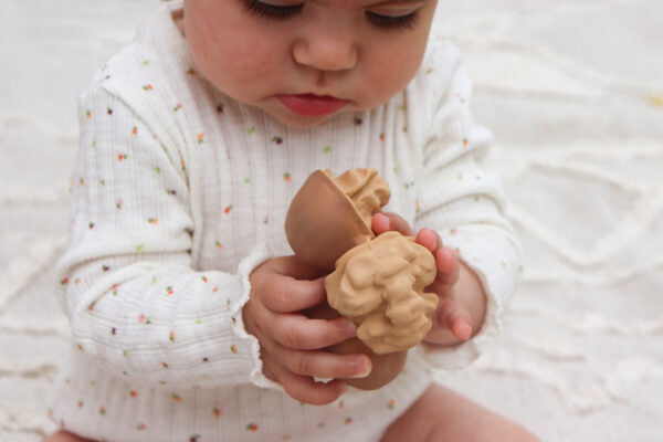 Nutty la noix : facile à prendre en main avec des textures très réalistes pour stimuler les sens de bébé.