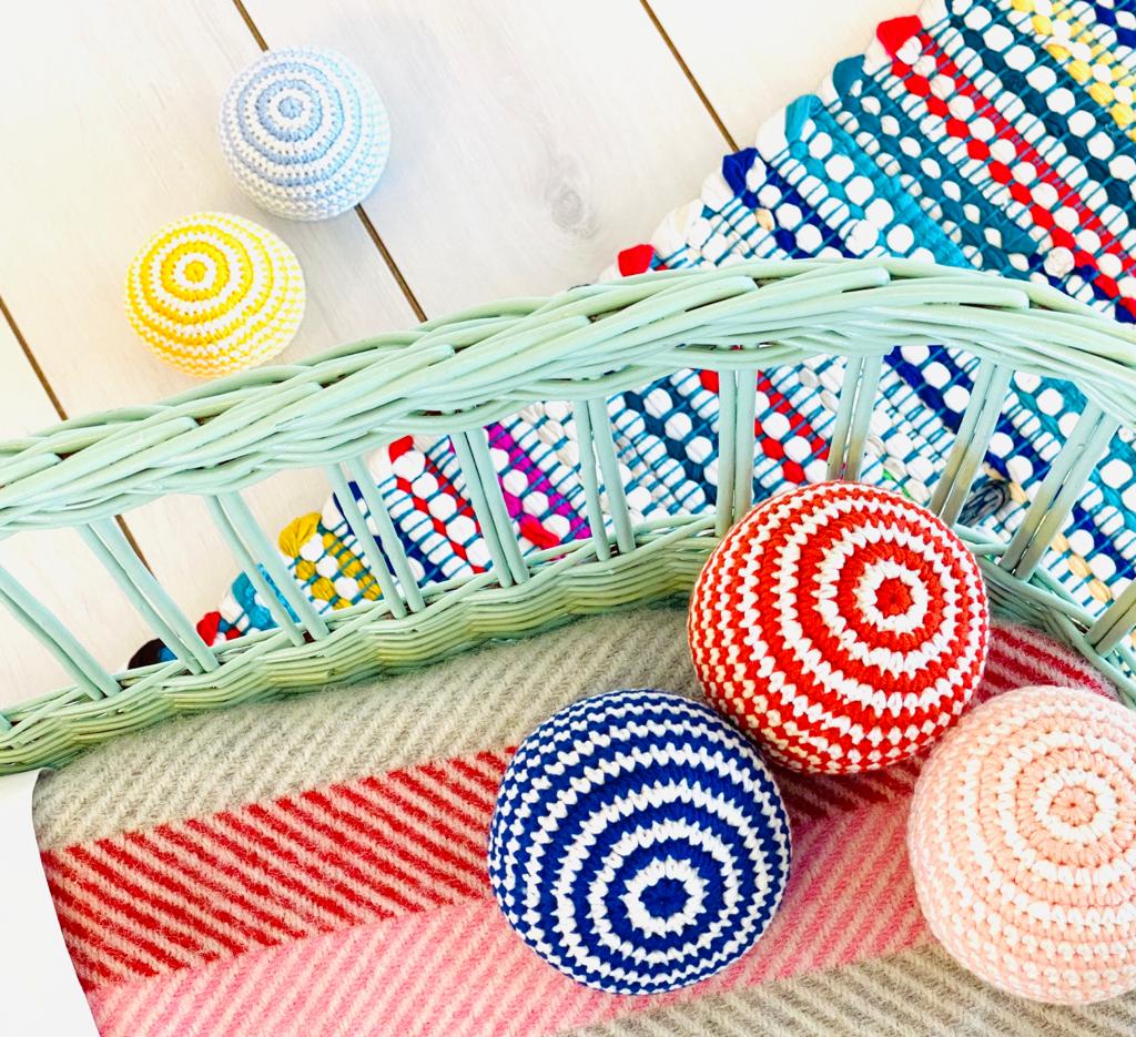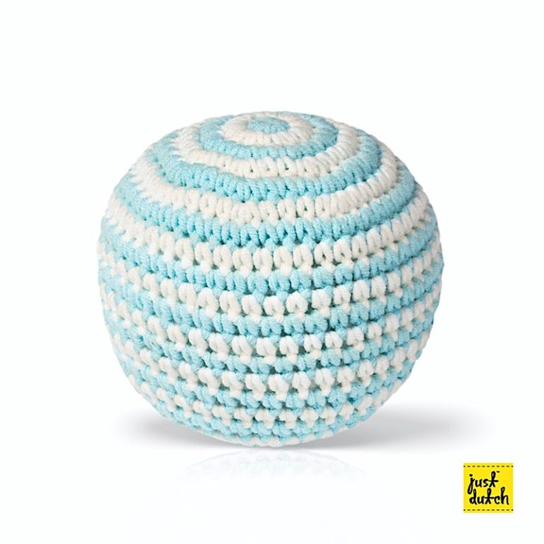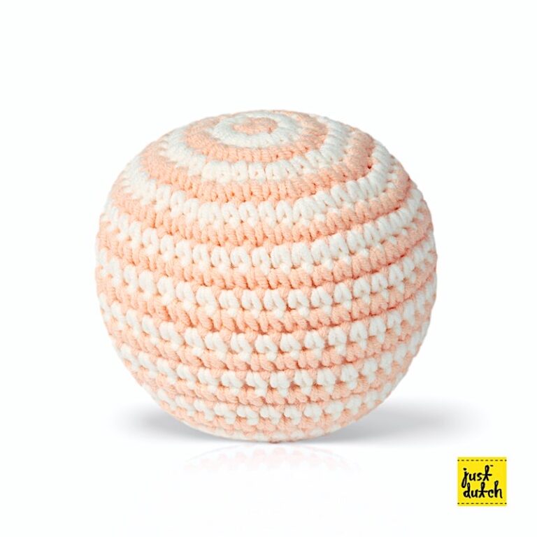 La peluche Just Dutch en forme de Balle, fabriquée à la main au Vietnam, dans le cadre d’un programme d’insertion. Douce et mignonne dans le berceau.