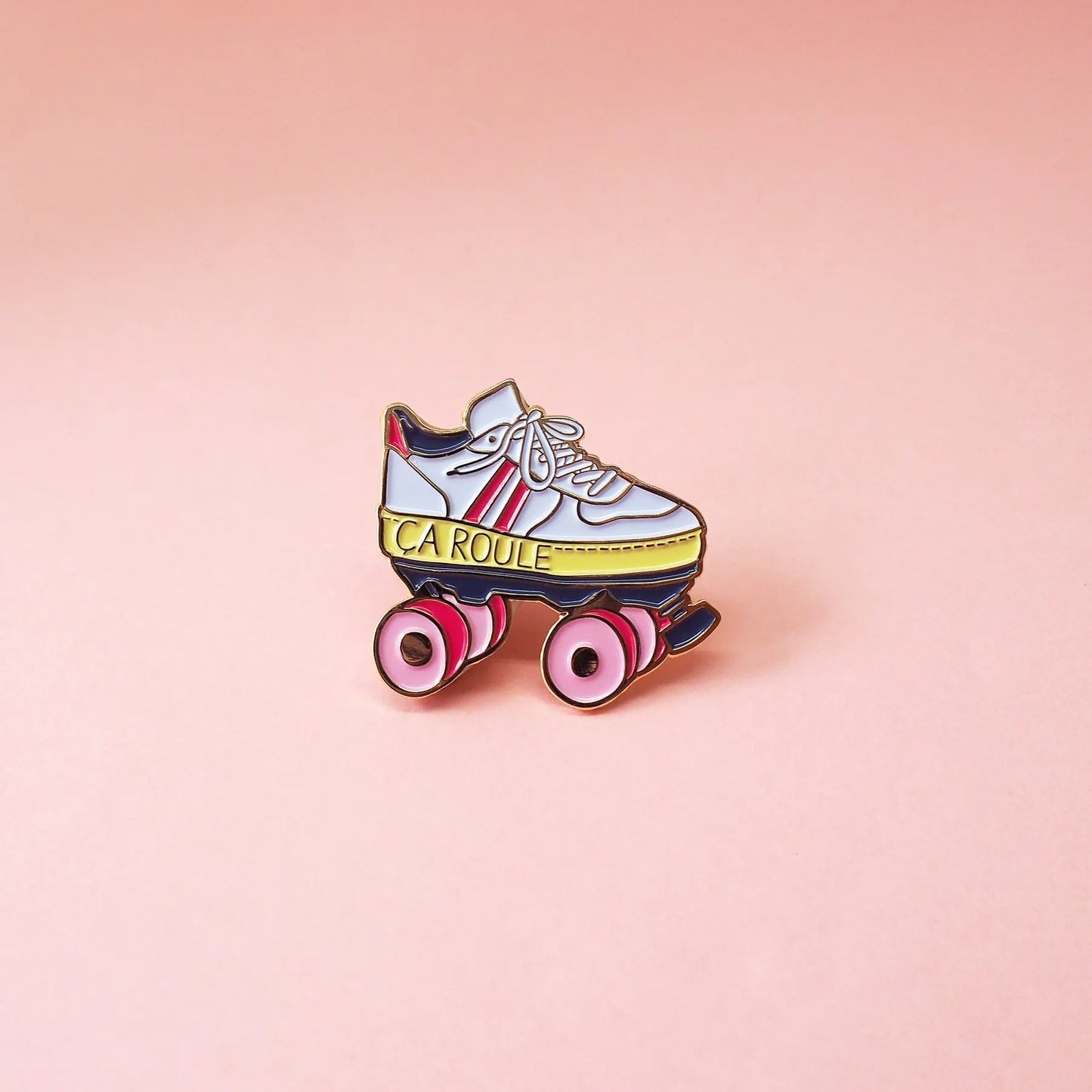 Le petit préféré des fans de roller derby, des filles bloquées sur le dancefloor et des adeptes des expressions désuètes. Promis, pas besoin de savoir faire des triple-axel sur parquet ciré pour pouvoir le porter. Il te suffira de prendre la vie comme elle vient. Le pin’s émaillé Ça roule complète ton look 90s avec une touche d’audace.