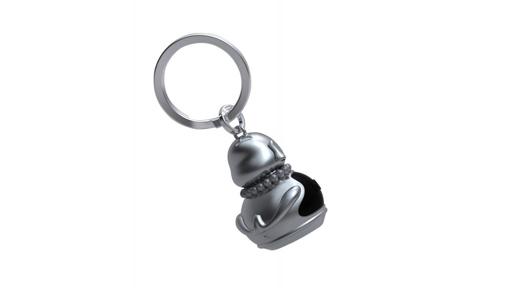 Bouddha porte bonheur noir avec collier silicone gris et texte Good Luck. Trappe à message