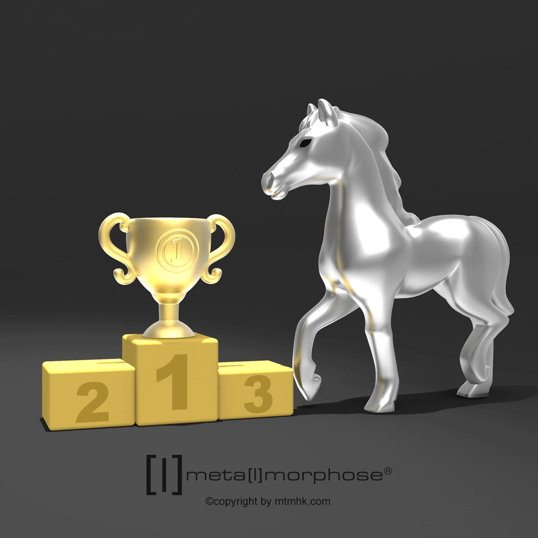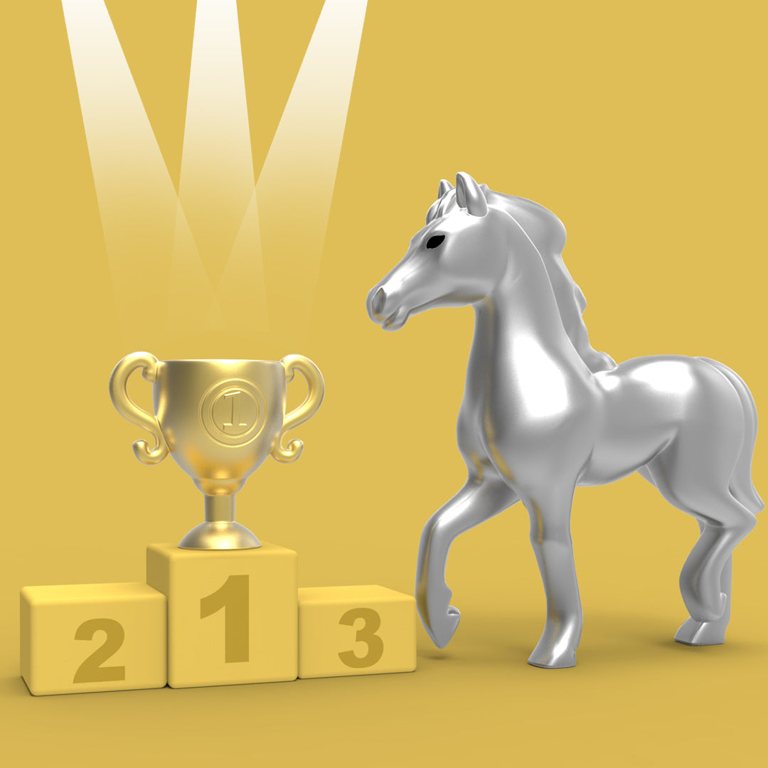 Cheval de course argent avec trophé