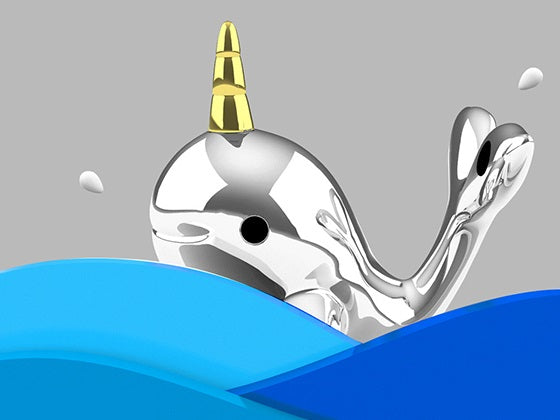 Narval chromé et corne dorée